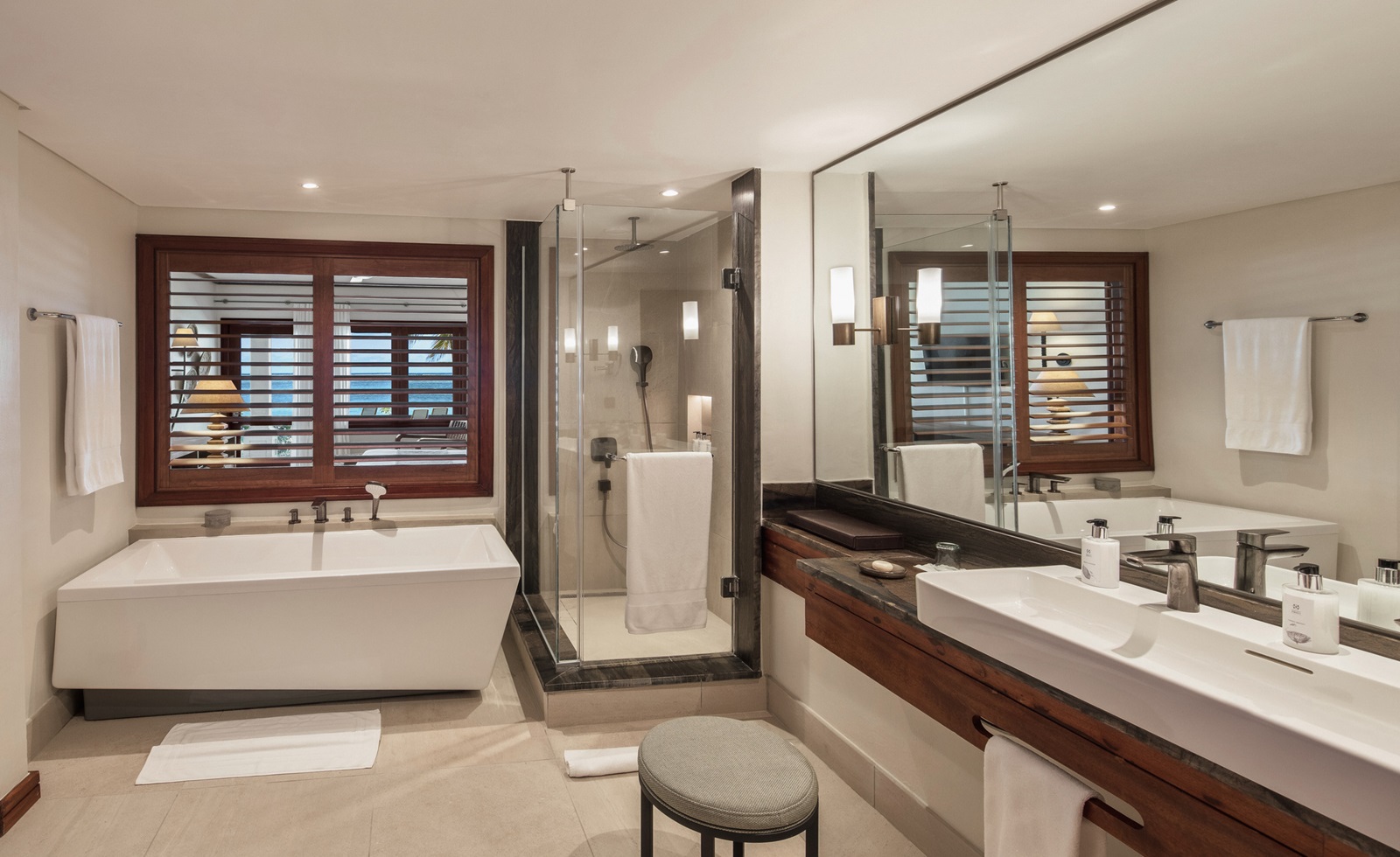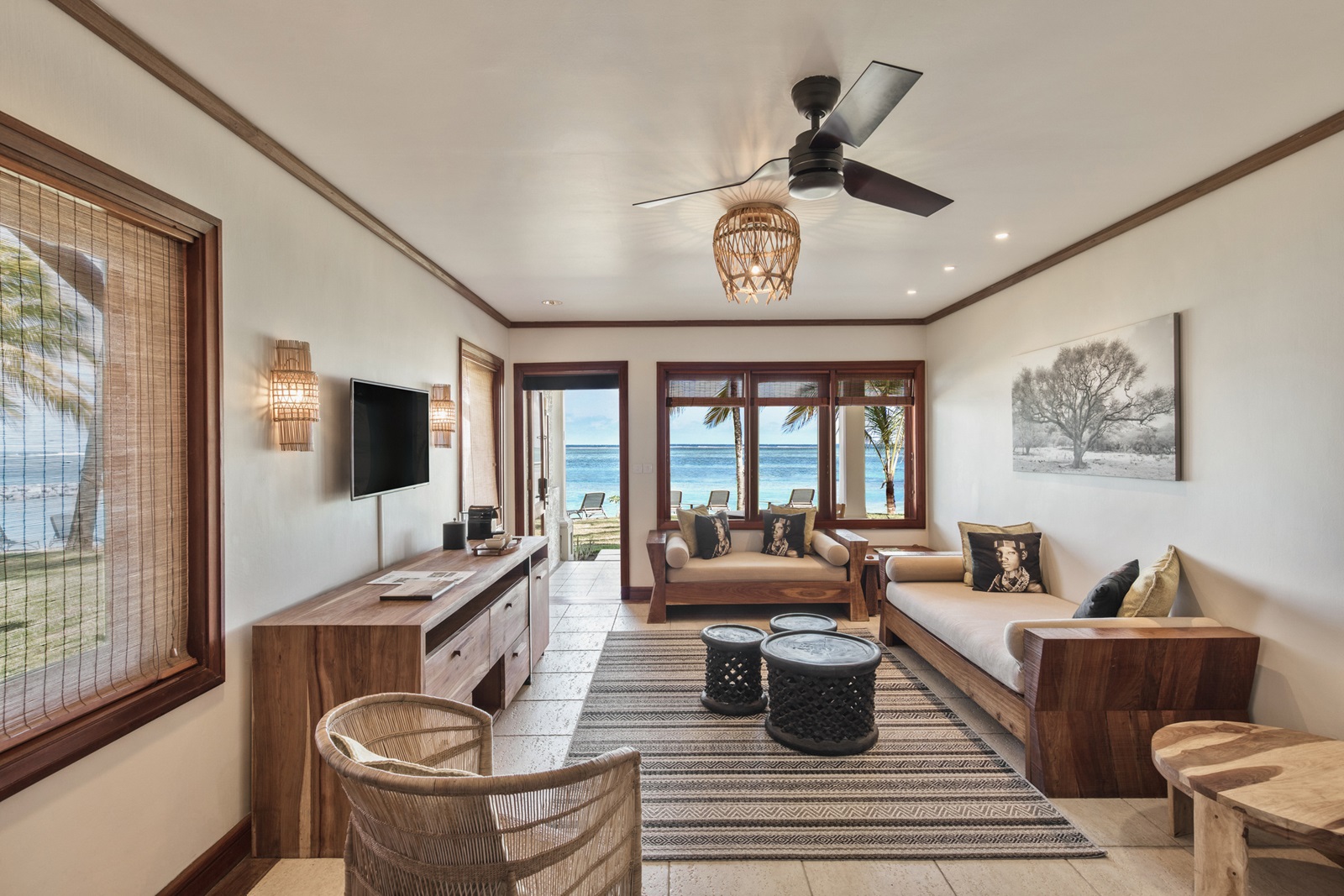 Senior Suites Beachfront (100 m²) au rez-de-chaussée avec chambre à coucher séparée, salon, baignoire jacuzzi et accès à la plage