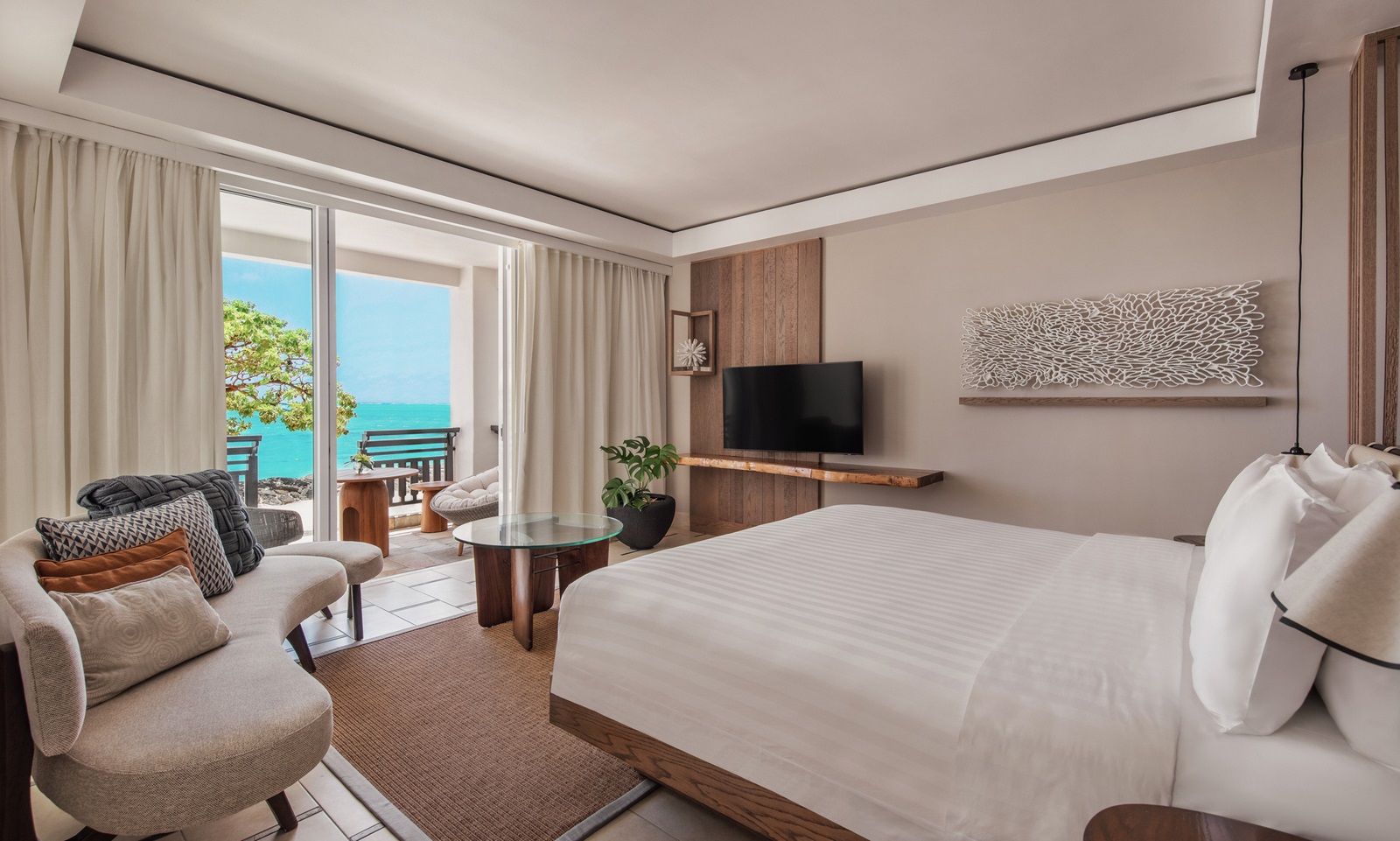 les chambres/suites ‘Ocean View’ sont situées au 1er ou au 2ème étage avec vue mer, les chambres/suites ‘Beachfront’ sont situées au rez-de-chaussée avec accès à la plage