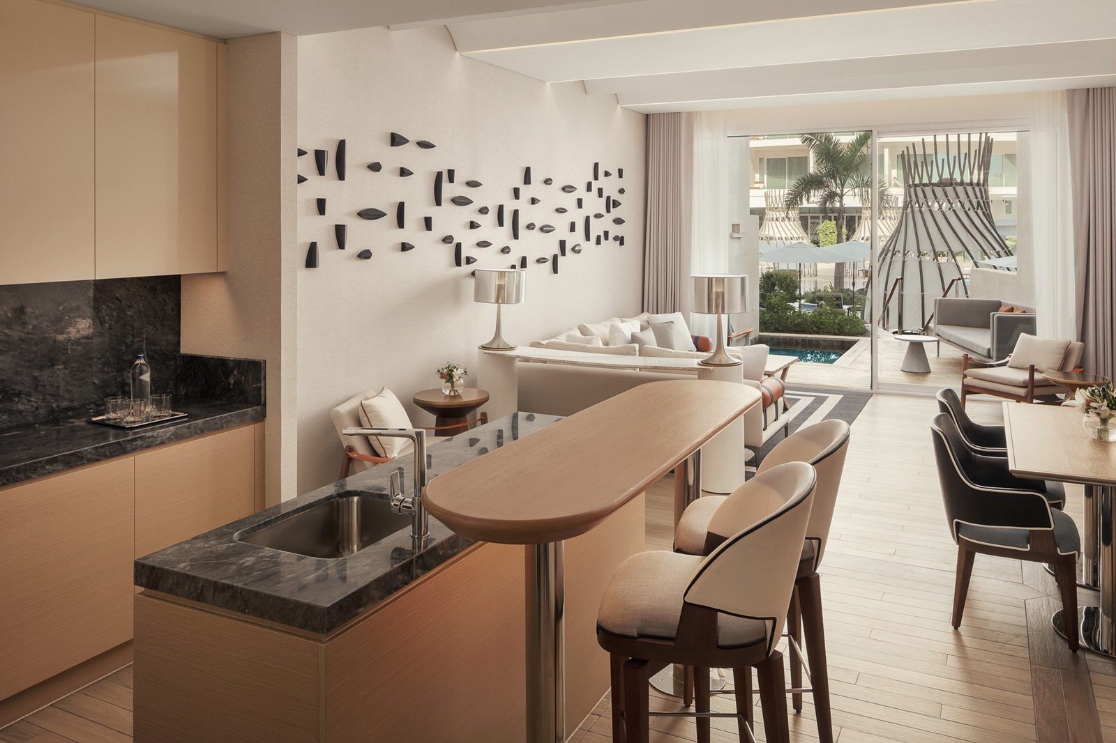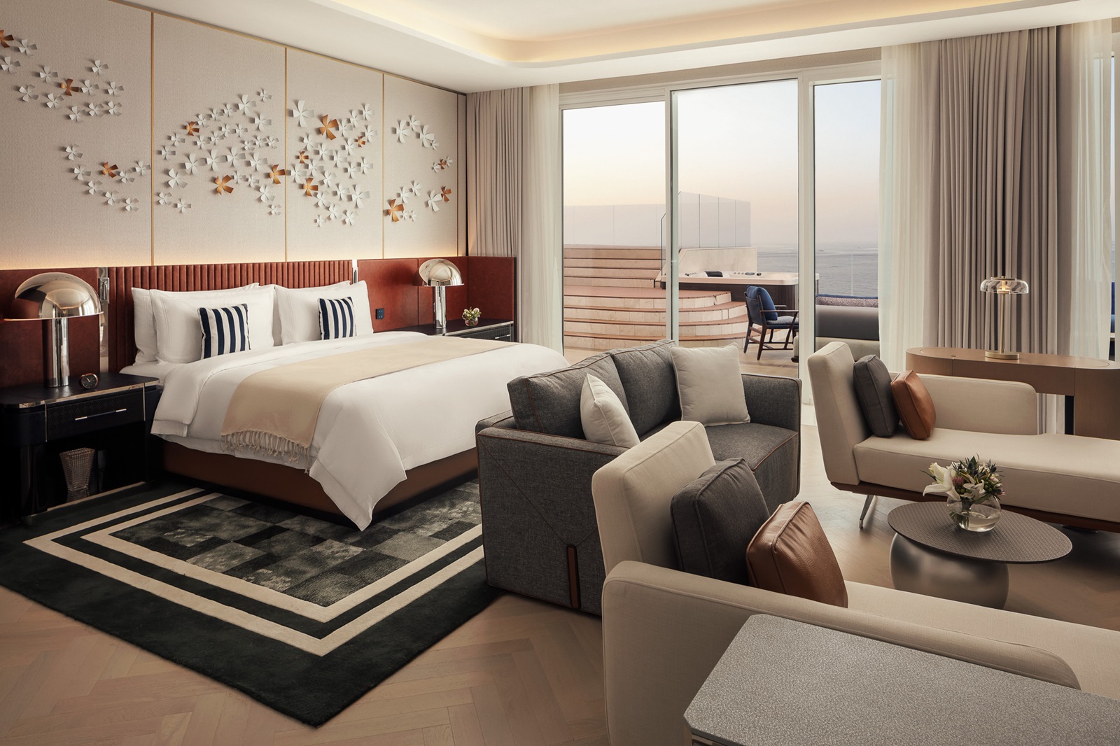 suites St. Regis (85 m²) avec grand coin salon ouvert et grand balcon, également disponibles avec vue mer