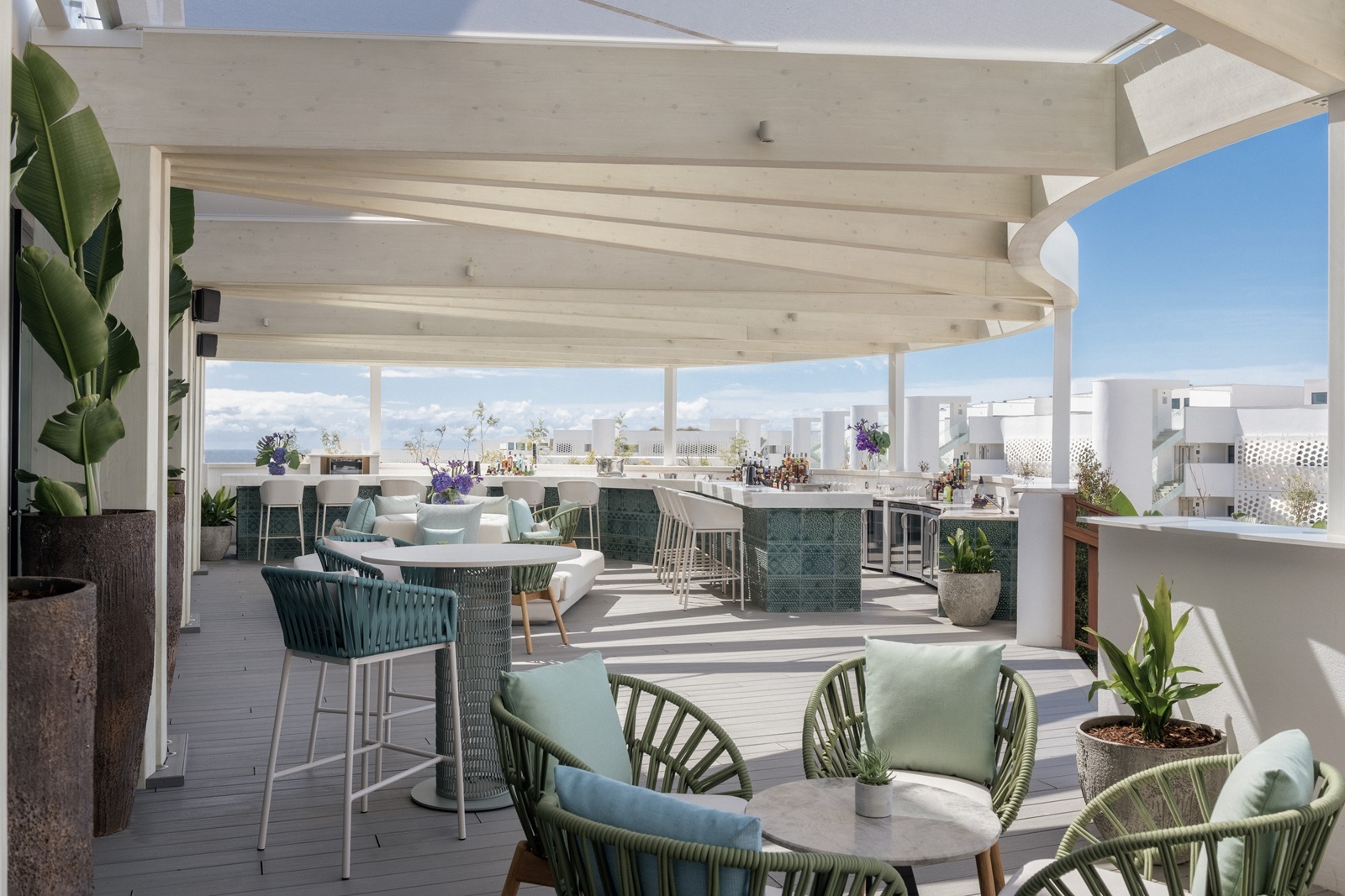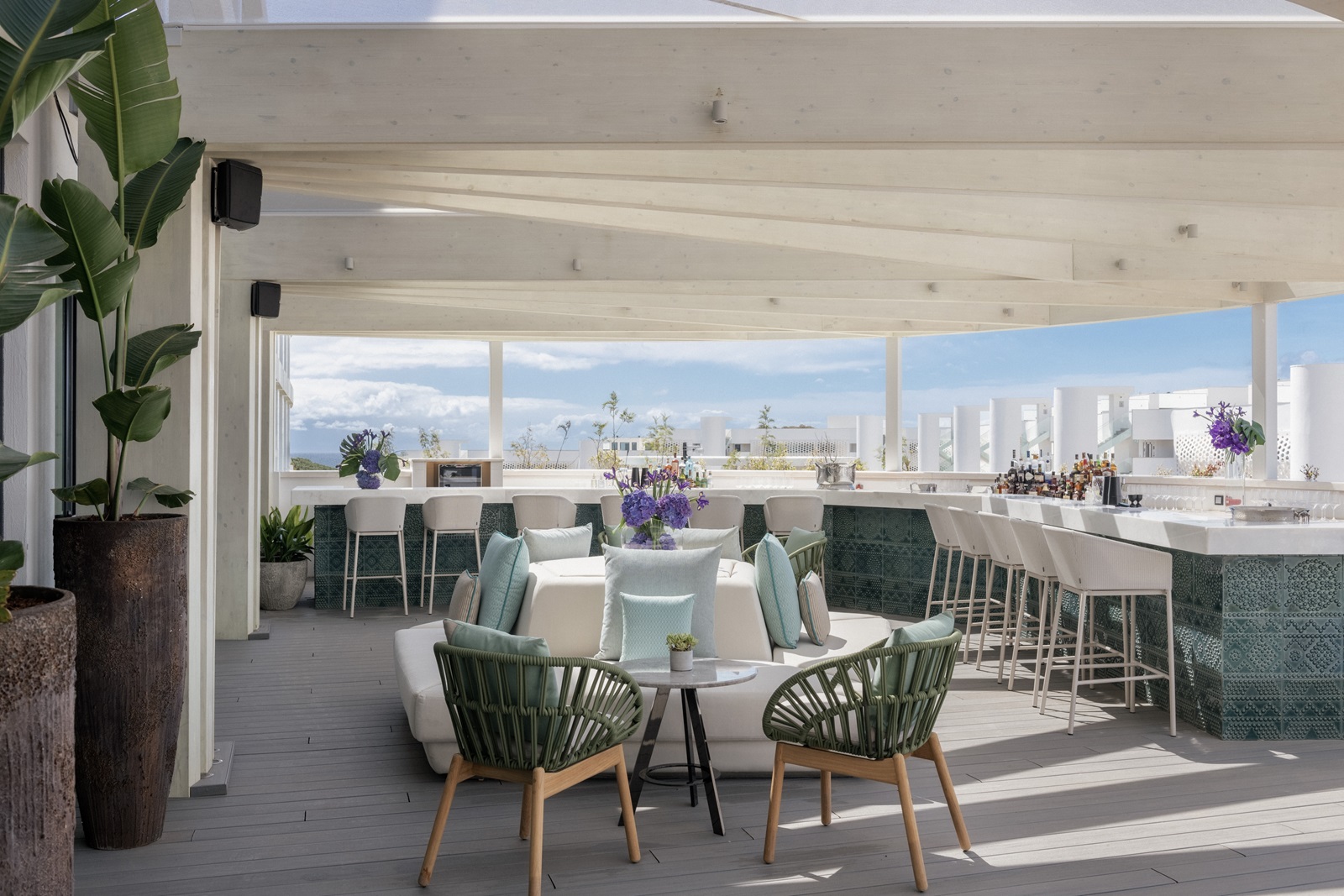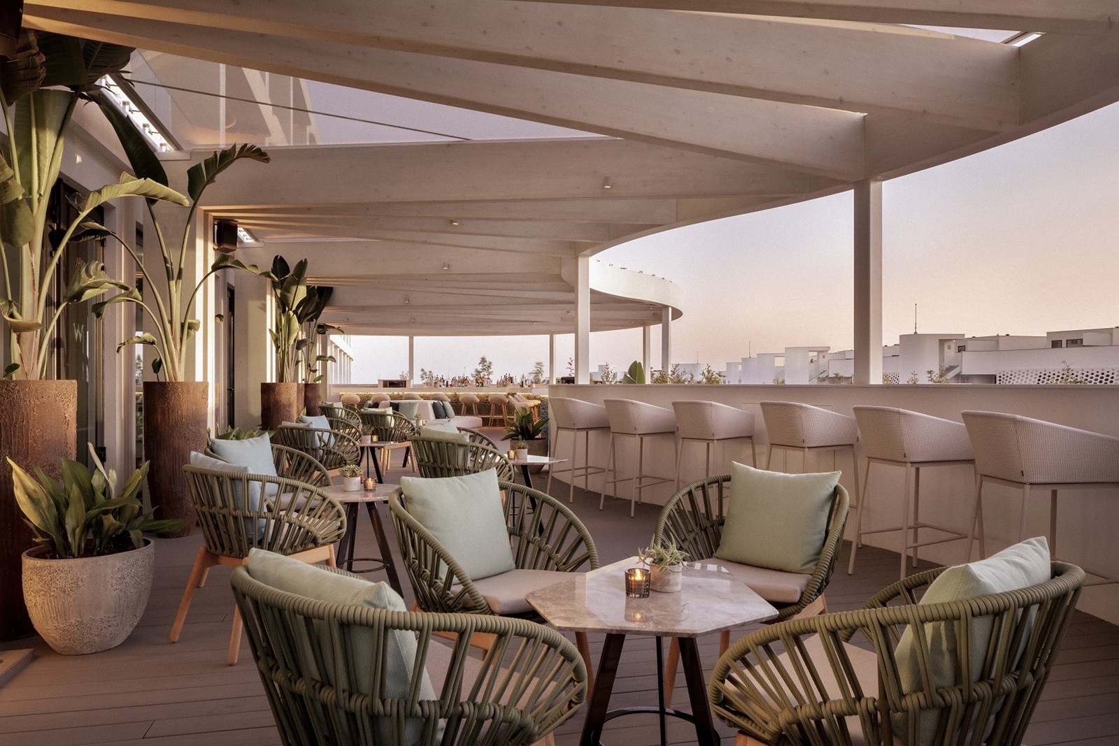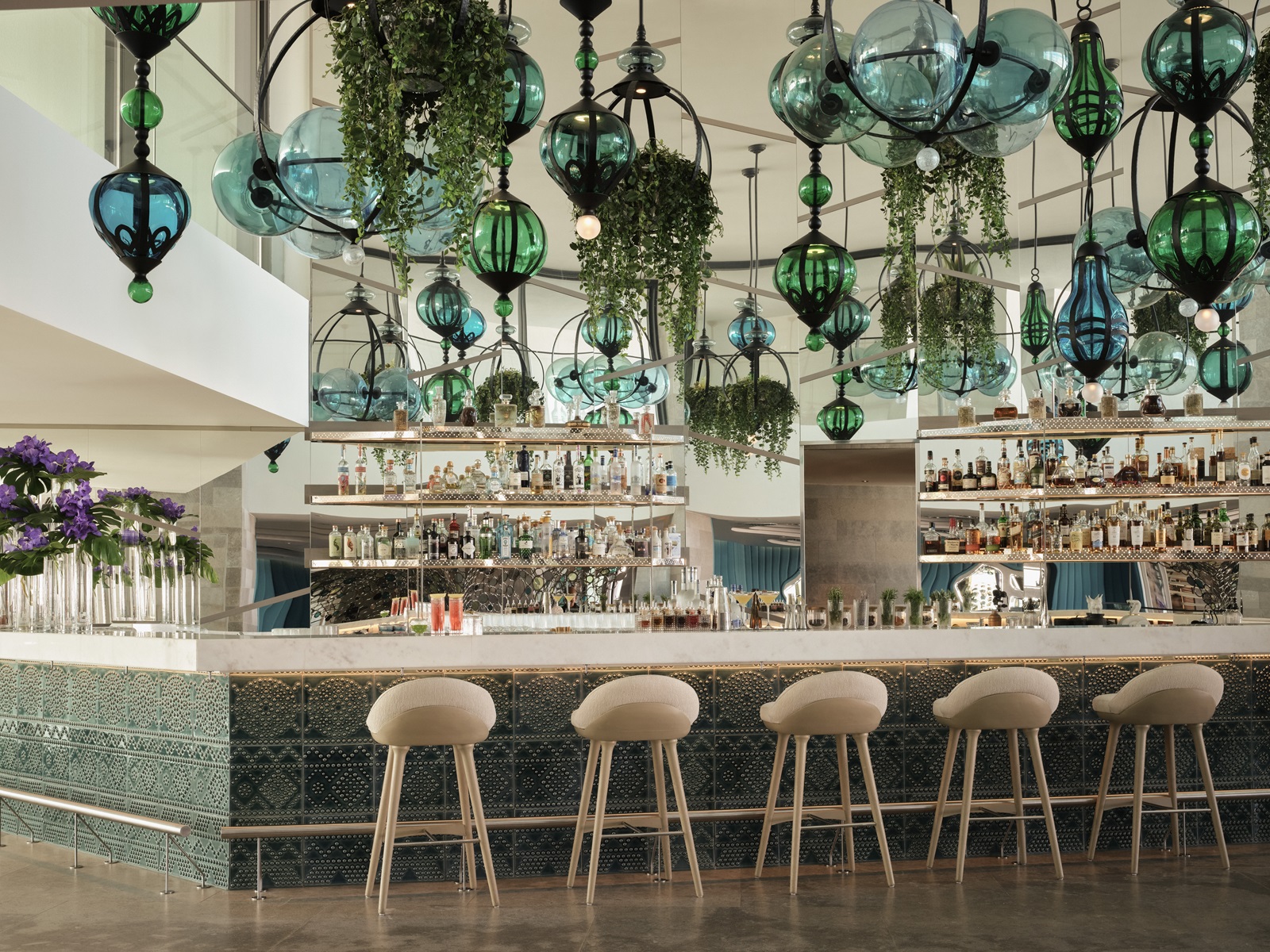 rooftop bar ‘Sea Sky’ offrant une vue panoramique sur la mer, bar à champagne ‘AIR’ pour admirer le coucher de soleil et ‘SIP@WET’ au bord de la piscine proposant des cocktails (ainsi que des spécialités asiatiques et méditerranéennes pour le déjeuner)