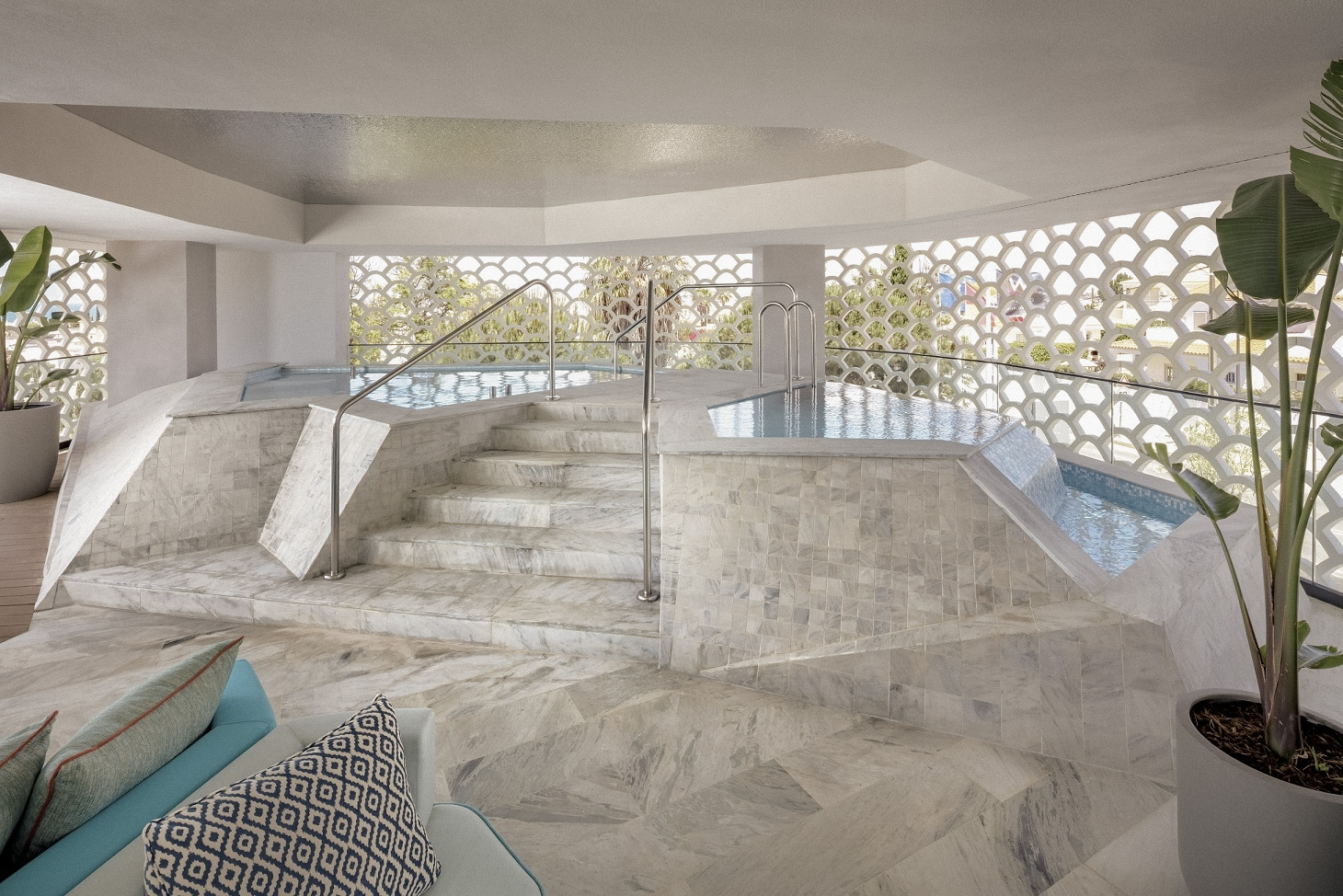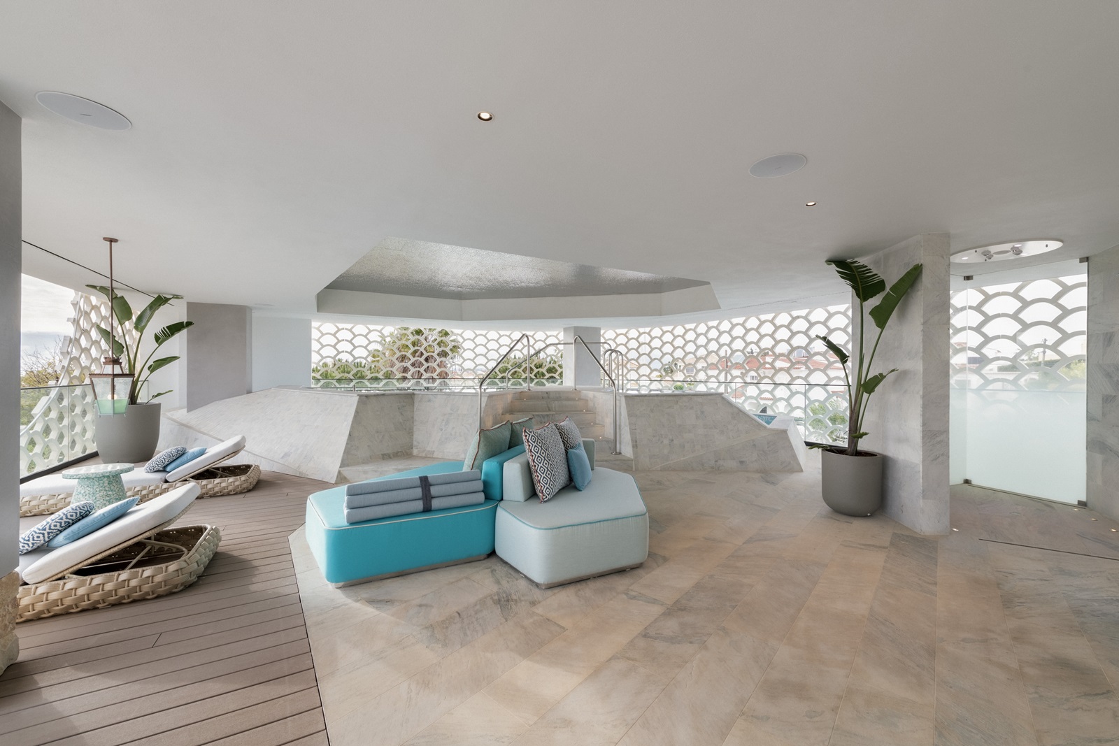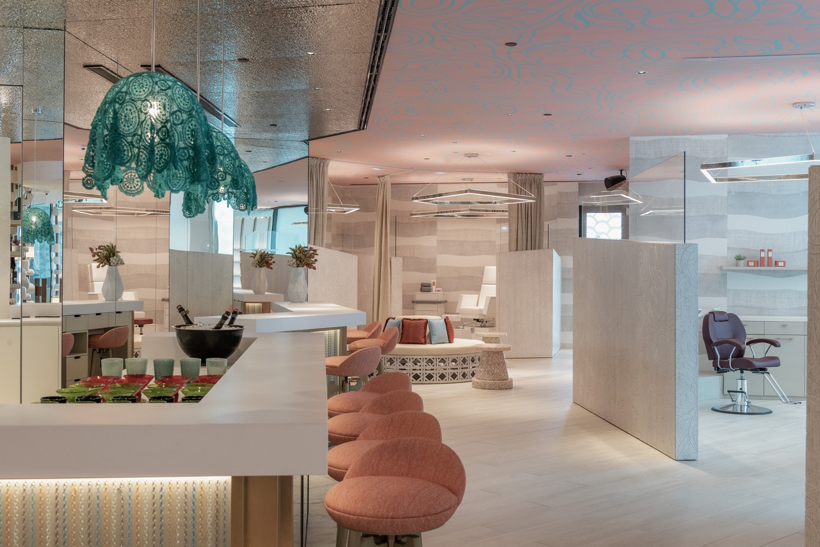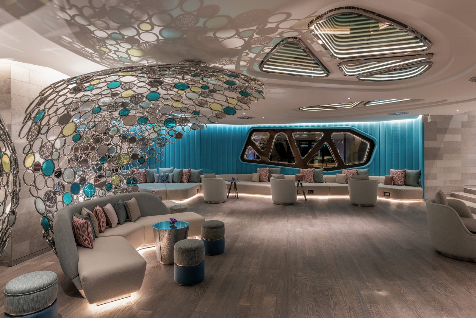 ‘AWAY Spa’ avec ‘Fuel Bar’ : wet area (avec sauna, bain de vapeur, jacuzzi et zone de relaxation), manucure, pédicure, coiffeur, 6 salles de traitement, massages et soins de beauté