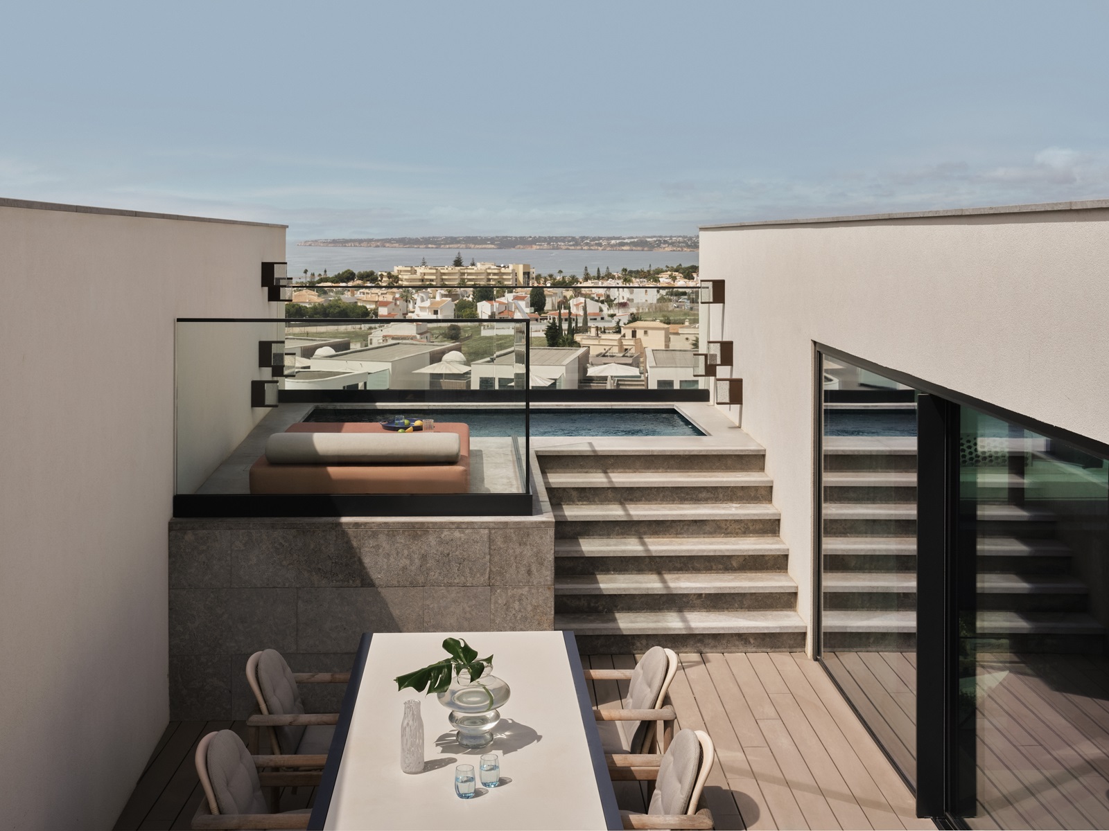 WOW (duplex) suites (107 m²) avec chambre à coucher et salon séparé et balcon spacieux avec chaises longues et vue mer, également possible avec petite piscine privée sur la terrasse