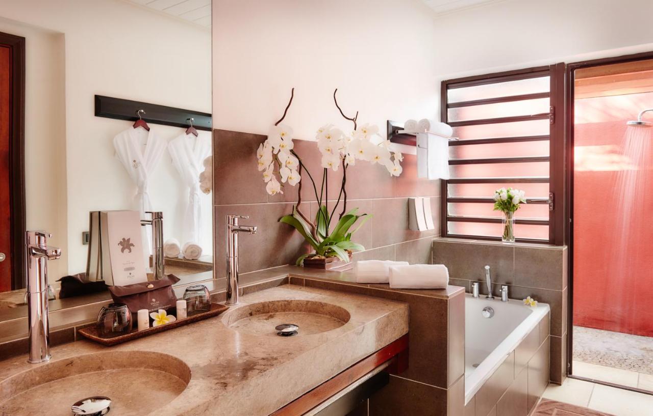 suites (55 m²) avec salle de bain plus grande (baignoire et douche extérieure), dressing, véranda et terrasse avec jacuzzi