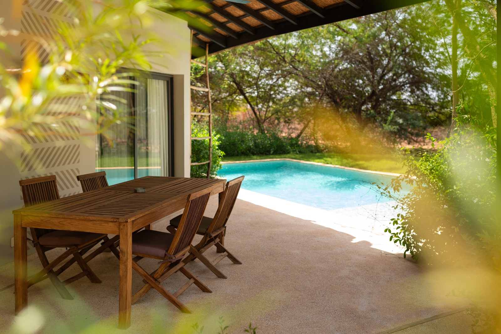 suite Calao (2 x 50 m²) composée de 2 bungalows avec chacun 2 chambres, une salle de bain et une piscine privée