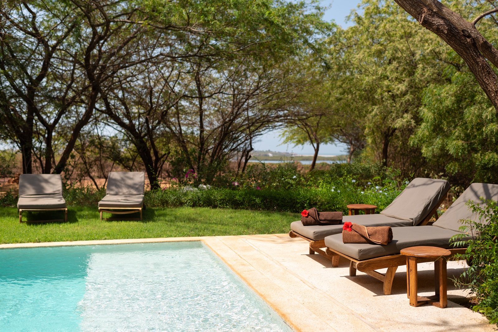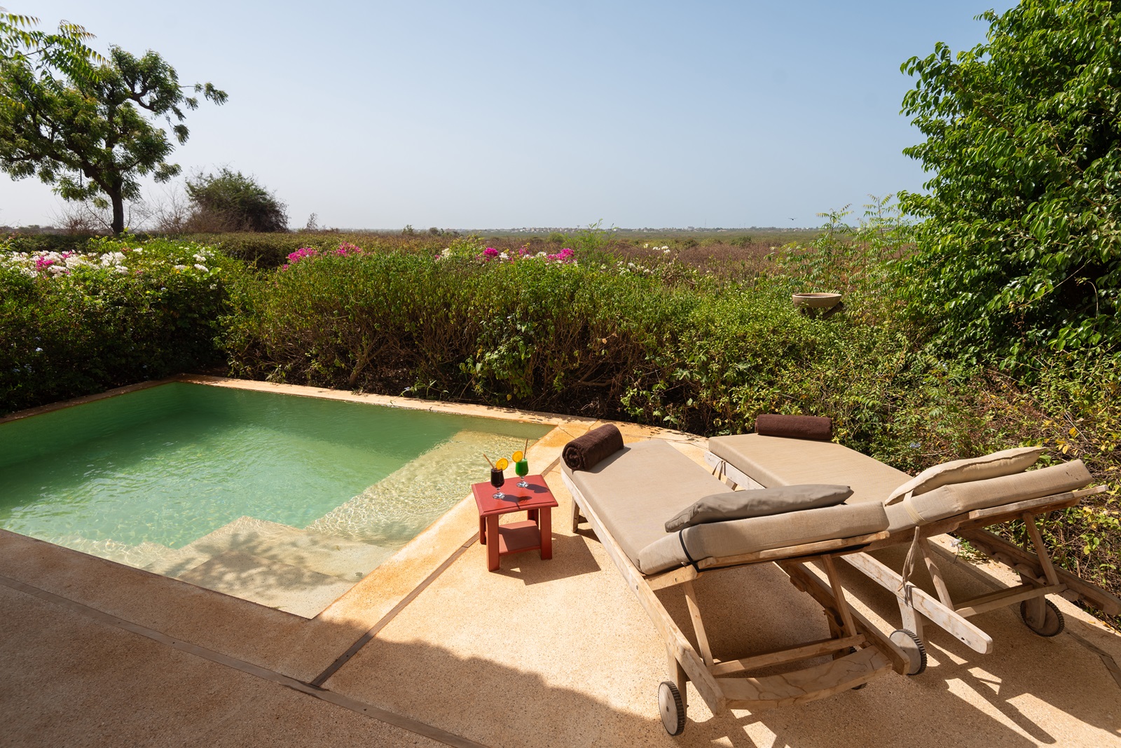 Les Manguiers de Guéréo est une luxueuse lodge située au Sénégal, dans un cadre idyllique en bordure du lagon de La Somone. Entouré d’une nature préservée composée de mangroves, d'oiseaux et de baobabs, cet hôtel intimiste allie sérénité, raffinement et authenticité. Réparties sur un domaine de 10 hectares, les charmantes chambres, suites et villas, certaines dotées d’une piscine privée, offrent des vues panoramiques sur le lagon ou l’océan. Vous y profiterez d'une sérénité absolue, de l'hospitalité sénégalaise et d'expériences exclusives : observation des oiseaux dans des observatoires spécialement aménagés, excursions en kayak sur le lagon, excursions dans la réserve de Bandia ou sur la célèbre île de Gorée. Les Manguiers de Guéréo est l'endroit idéal pour se détendre dans le luxe et découvrir la magie du Sénégal.