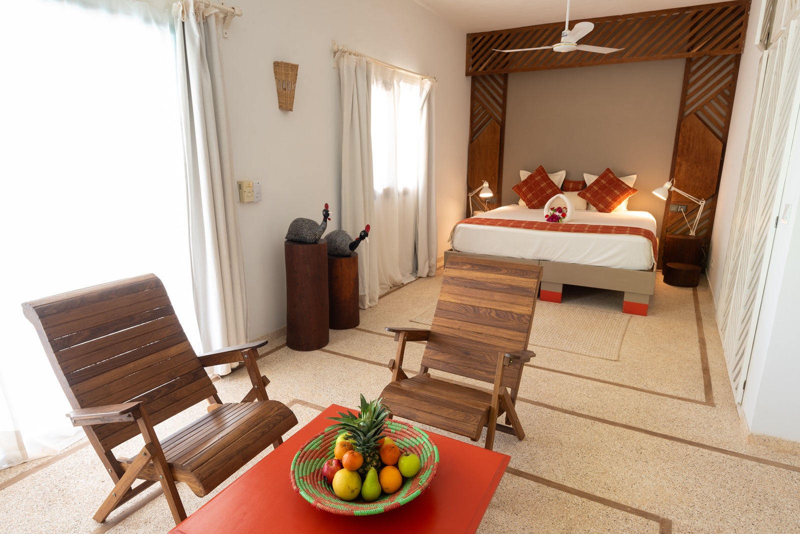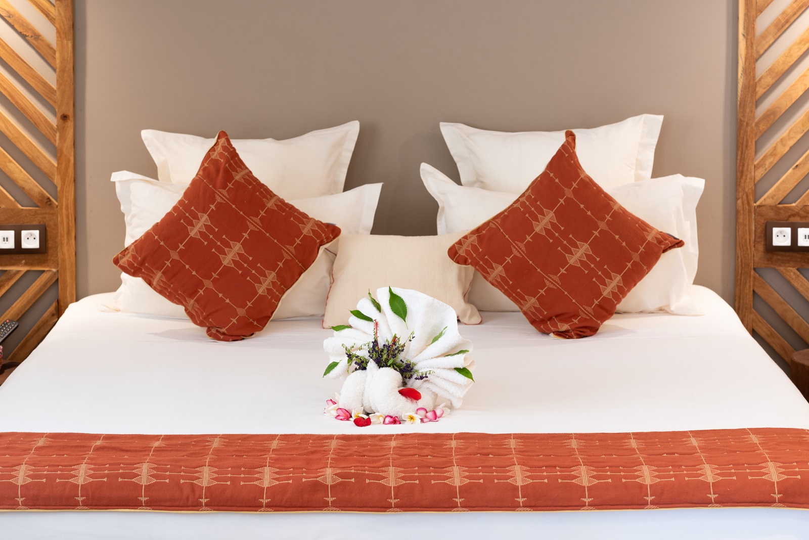 toutes les chambres, suites et villas sont décorées avec des matériaux naturels et disposent d’une salle de bain (douche ou bain, sèche-cheveux), climatisation, coffre-fort, wifi, minibar (€), coin salon, terrasse ou jardin