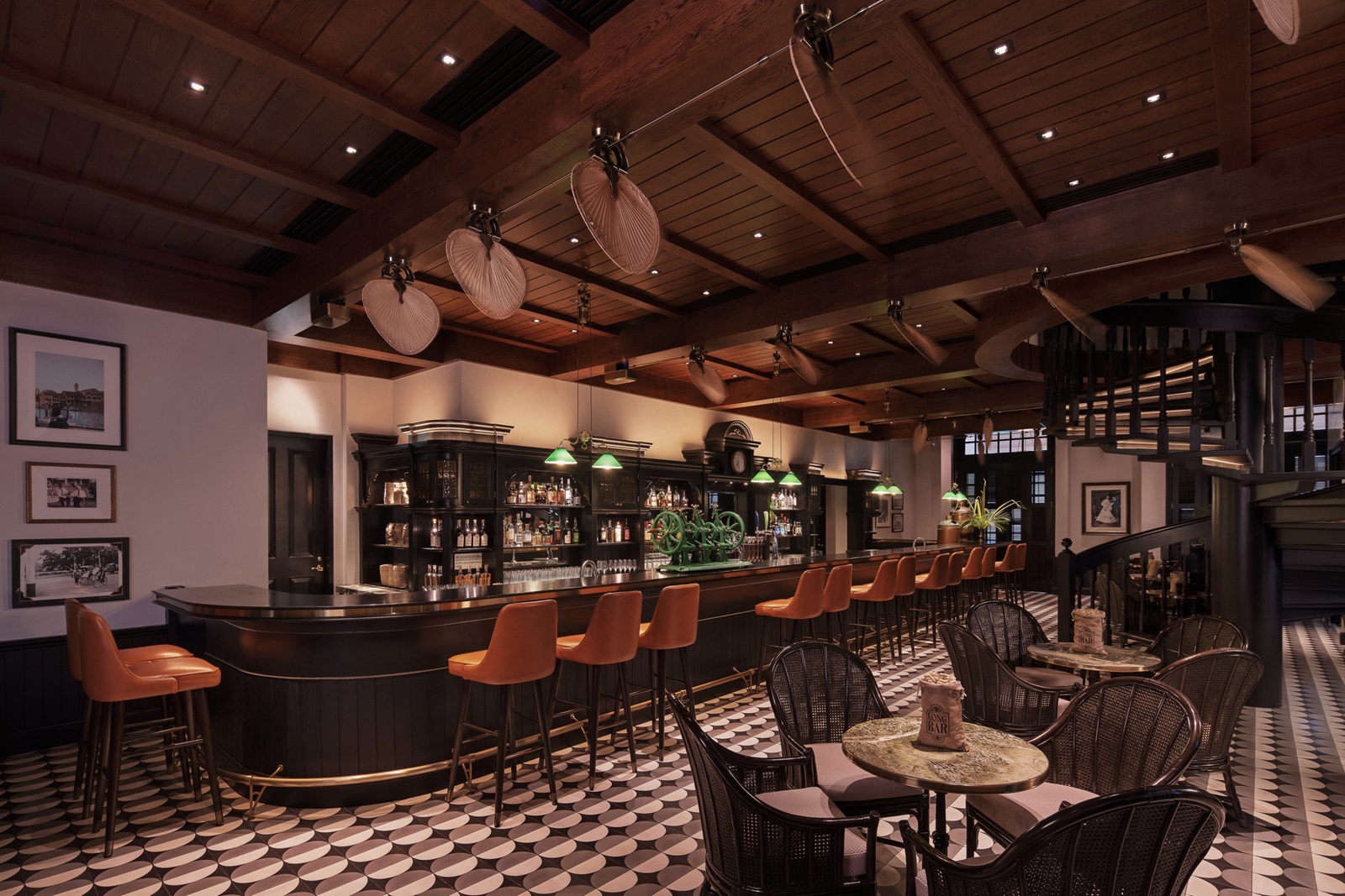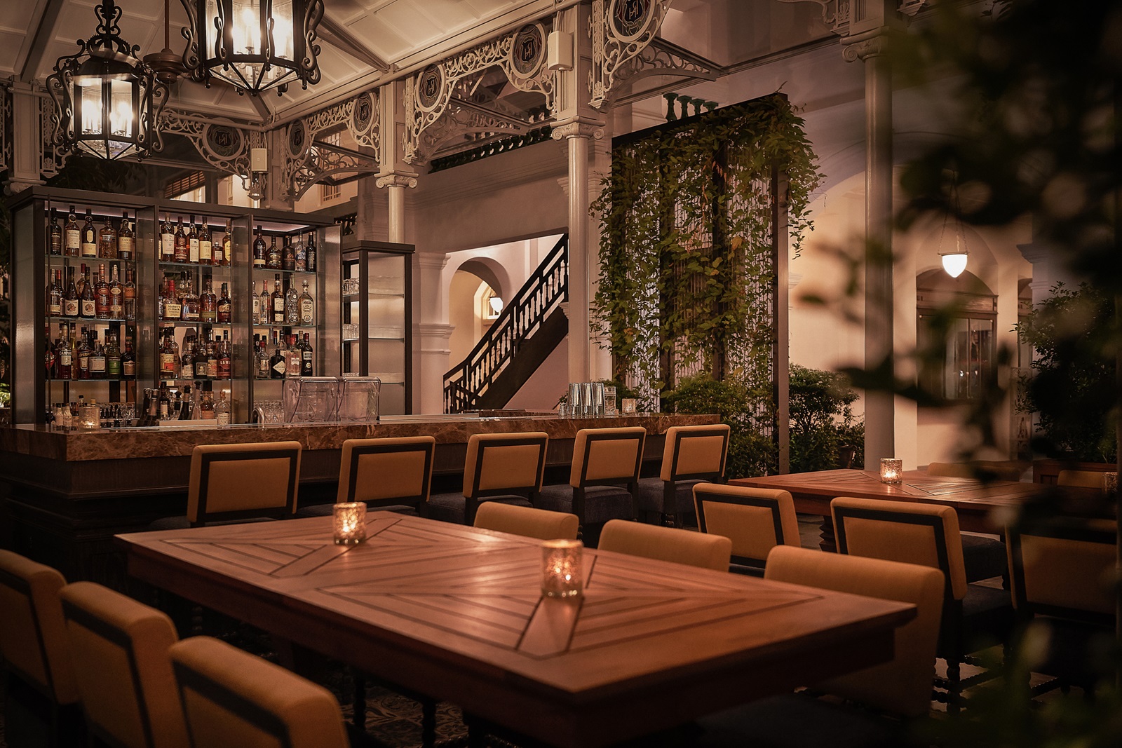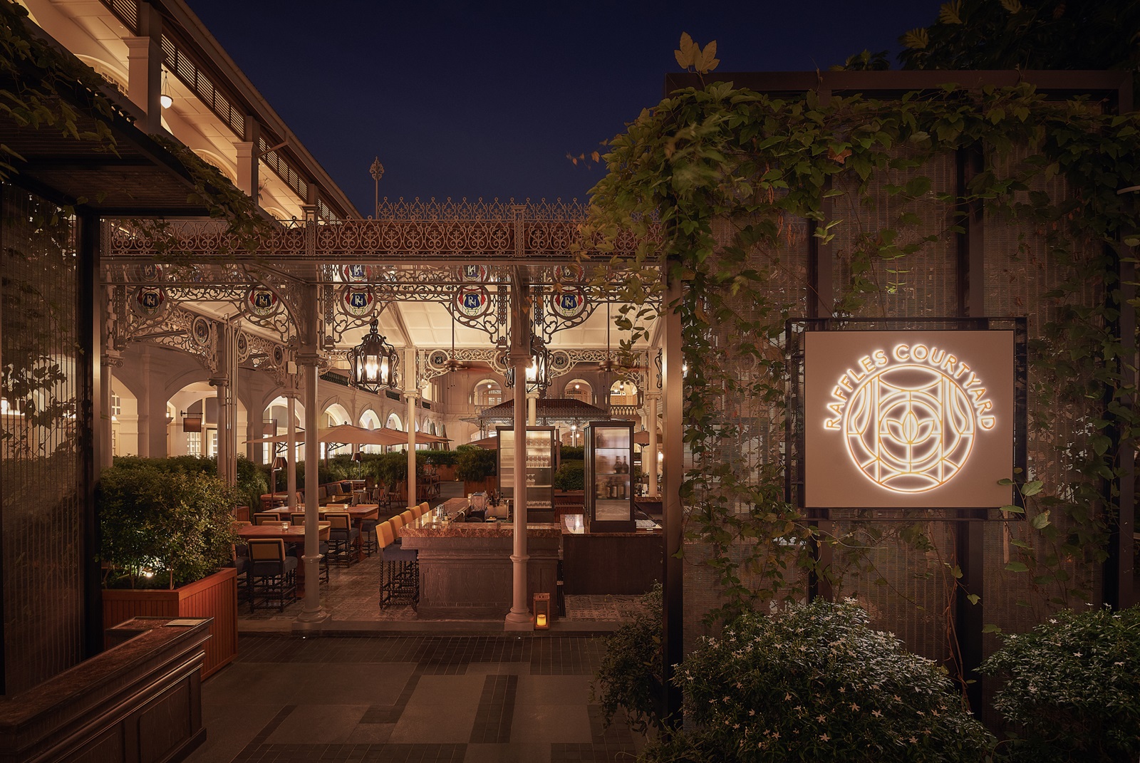 bars : ‘Long Bar’ sur deux niveaux (berceau du cocktail Singapore Sling), ‘Writers Bar’ (hommage aux nombreux écrivains qui ont séjourné ici, à partir de 18 ans) et ‘Raffles Courtyard’ en plein air (cocktails et snacks d'origine sud-asiatique)