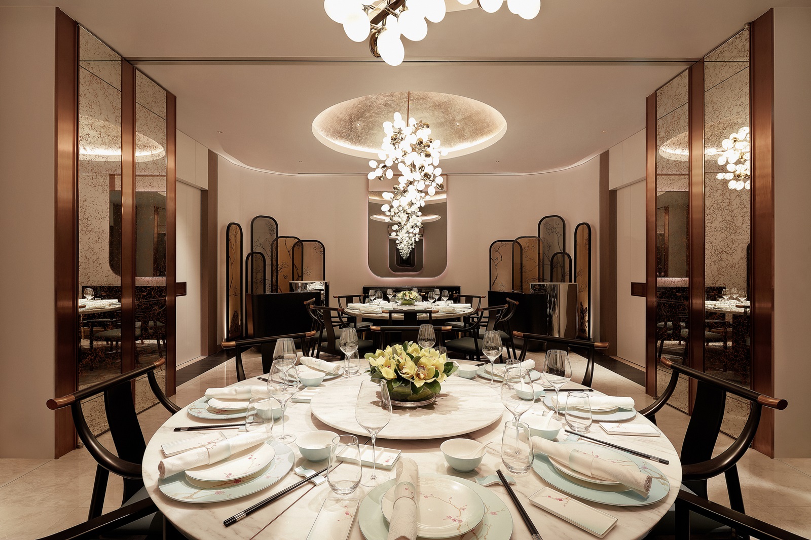4 restaurants à la carte : ‘The Grand Lobby’ (cuisine authentique, dîner), ‘Butcher's Block’ (grillades de four à bois, dîner), ‘Tiffin Room’ (cuisine nord-indienne, déjeuner et dîner), ‘藝 yì by Jereme Leung’ (cuisine chinoise moderne, déjeuner et dîner)