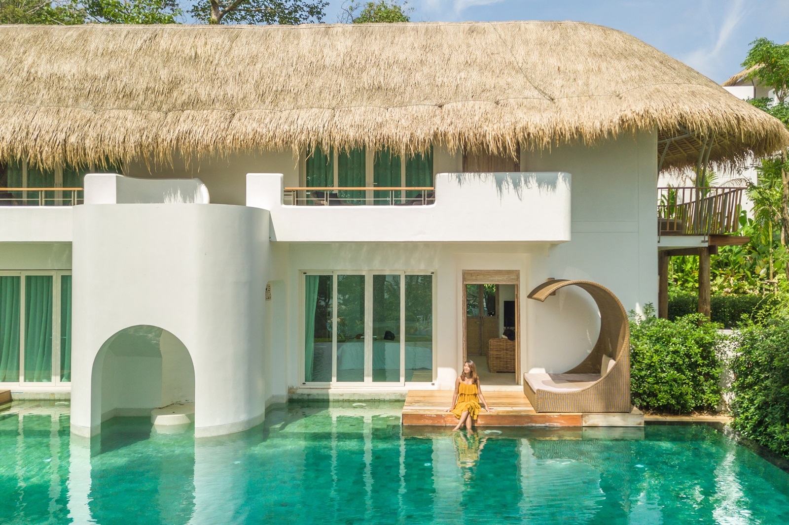 chambre Grand Deluxe Lagoon Pool View (41 m²) avec coin salon et vue piscine