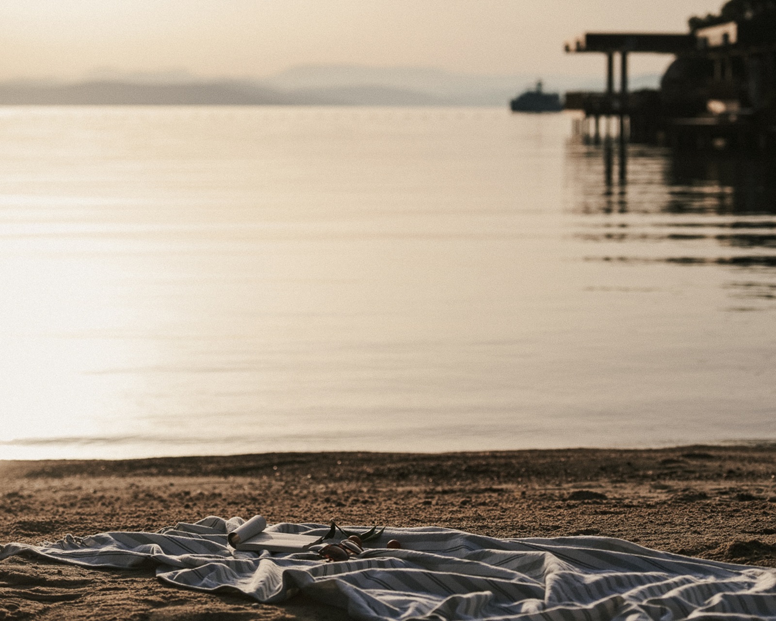 chaises longues, parasols et serviettes gratuits à la piscine et à la plage