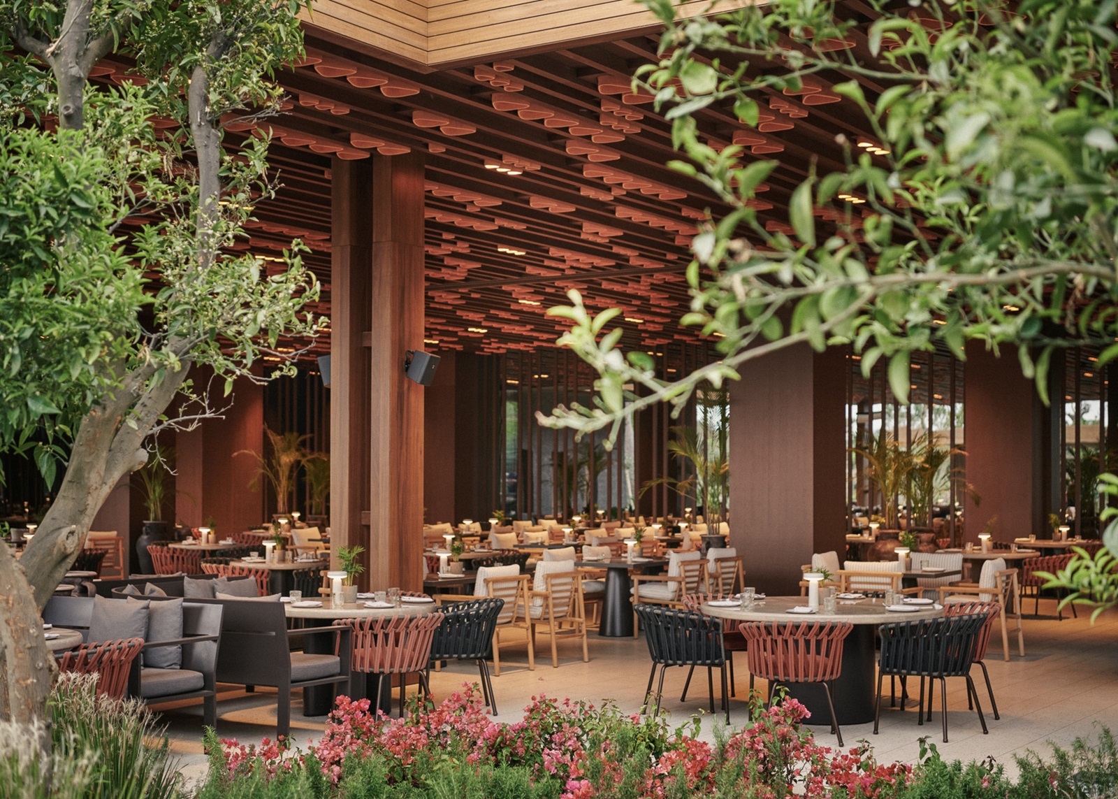 8 restaurants à la carte : 'Twenty 4' (international, 24h/24), 'Casa Sol' (déjeuner et dîner), 'Spago by Wolfgang Puck' (dîner), 'Caviar Kaspia' (cuisine française d'inspiration russe, dîner), 'Oro by Alfredo Russo’ dirigé par le chef étoilé Alfredo Russo (spécialités italiennes et végétariennes, dîner), The Main Bodrum' (internationale, dîner) et 'Maguro' (japonais et sushi, déjeuner et dîner)