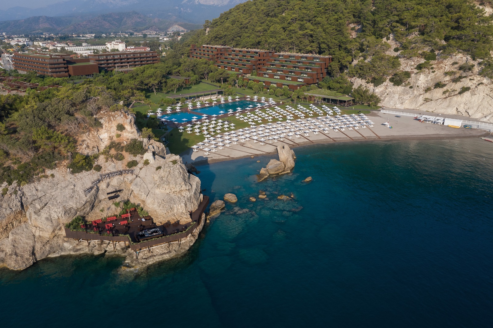 Ce resort familial se situe à peine à 7 km du centre de Kemer et jouxte trois plages. Si vous optez pour la vaste formule all inclusive, vous recevrez notamment un cocktail fruité. Admirez les imposants monts Taurus et plongez dans les eaux bleu azur de la mer Méditerranée. L’hôtel propose exclusivement des suites dans un Cadre naturel époustouflant de pas moins de 16 hectares. Sur les plages privées, laissez-vous bercer par le bruit des vagues. Après le coucher du soleil, rendez-vous au jardin : c'est l'endroit idéal où savourer votre repas.