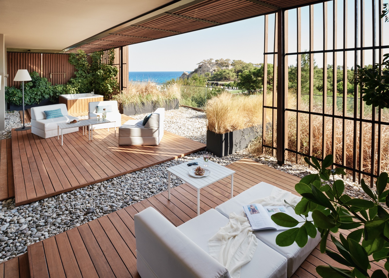 suites (100 m²) avec séjour/chambre à coucher spacieux et vue jardin ou vue mer