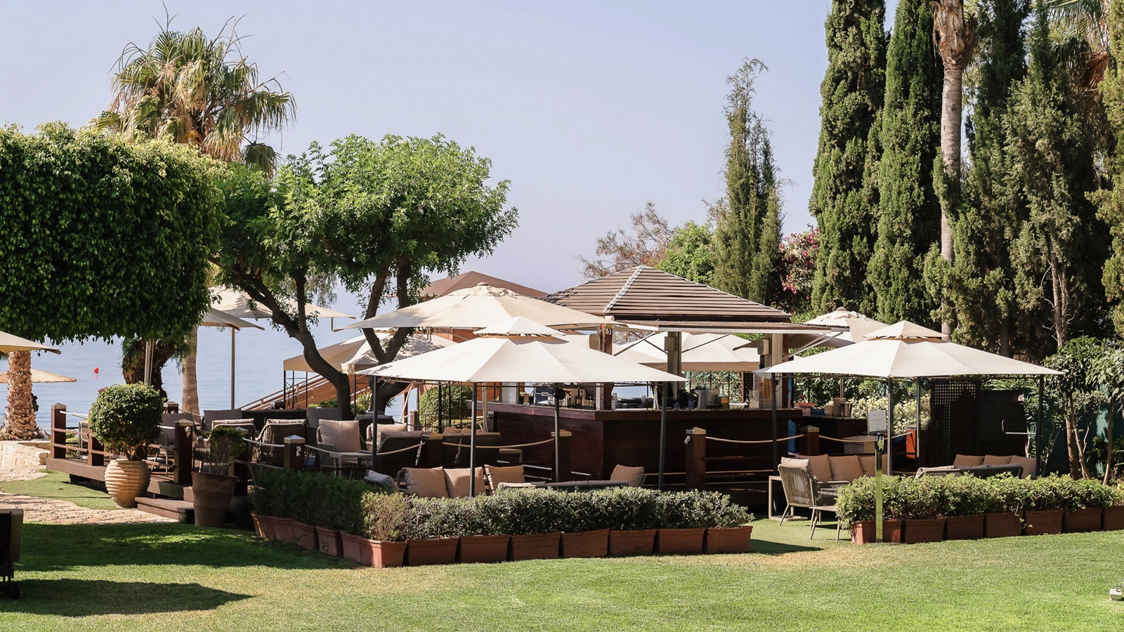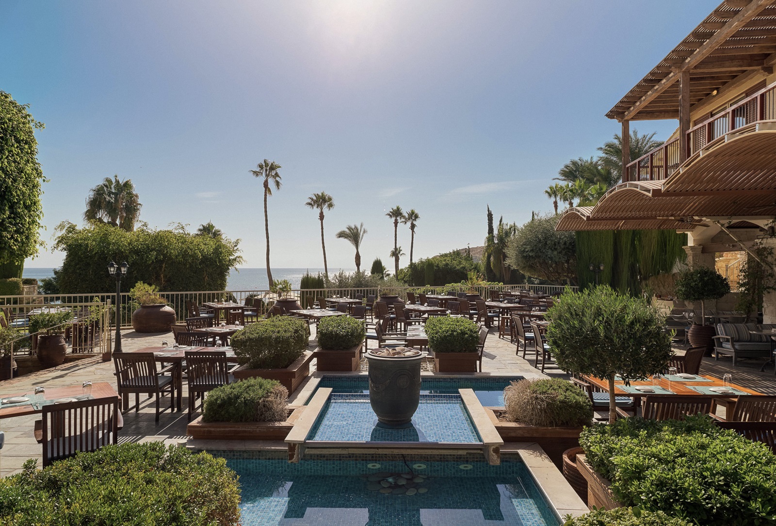 6 bars: beachbar, 2 poolbars, cocktailbar, Seven C’s Bar en Ouzeri