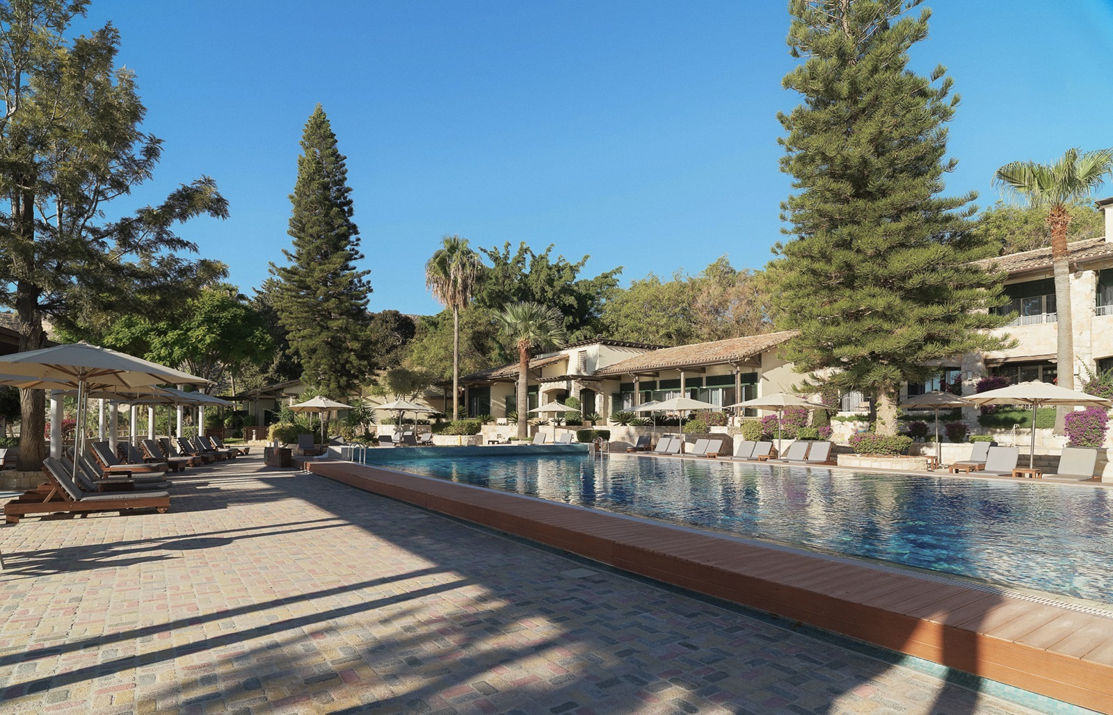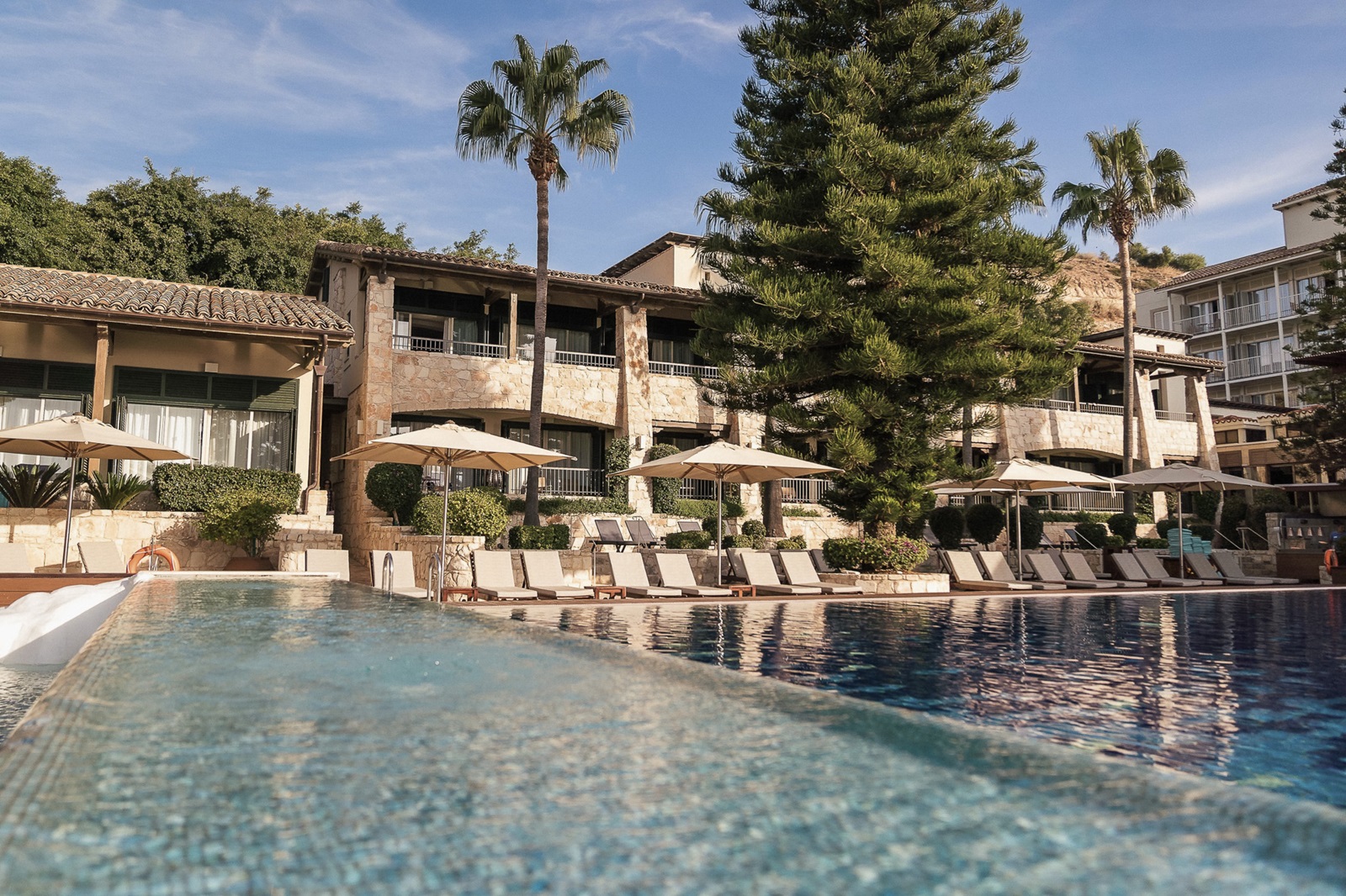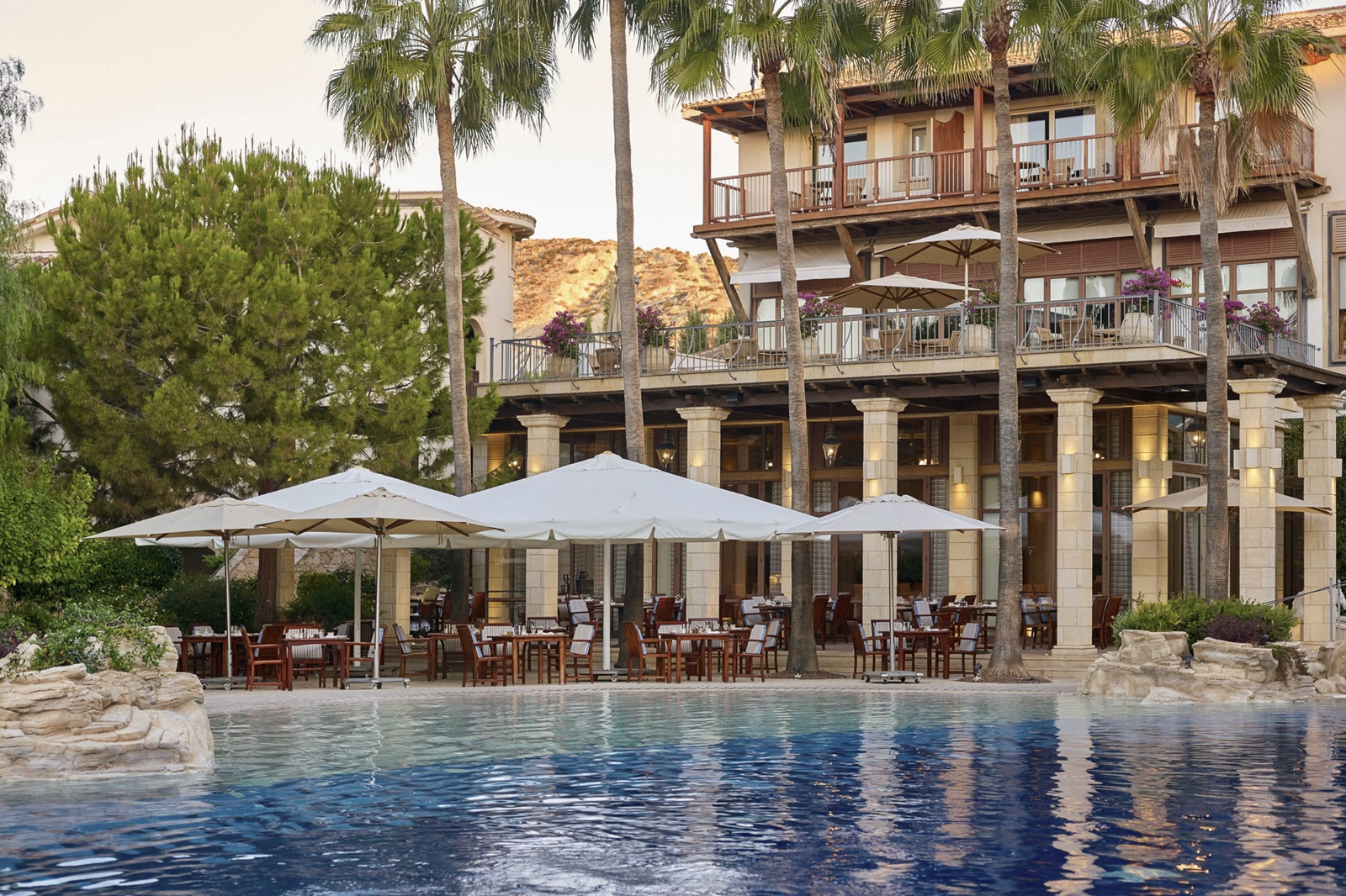 Direct aan het strand en omringd door groen vindt u het authentieke luxeresort Columbia Beach Resort, gelegen in Limassol in Cyprus. Het is resort is volledig opgetrokken in Cypriotische stijl. Het zwembad doet denken aan een tropische lagune, en op de achtergrond rijzen rotsen op uit het heldere zeewater. Vanuit de suites kijkt u uit op de strak onderhouden hoteltuin met palm- en olijfbomen, het zwembad of de baai. Genieten van Griekse en Italiaanse specialiteiten doet u 's avonds naast het verlichte zwembad of in de elegante setting van het restaurant. De dag erna gaat u watersporten, een balletje slaan op de golfbaan of relaxen in de bekroonde spa.