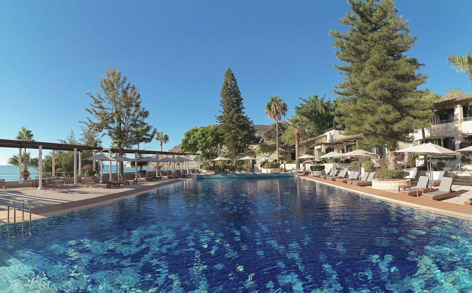 juniorsuites (43 m²) met woon-/slaapkamer, zwembad- of zeezicht