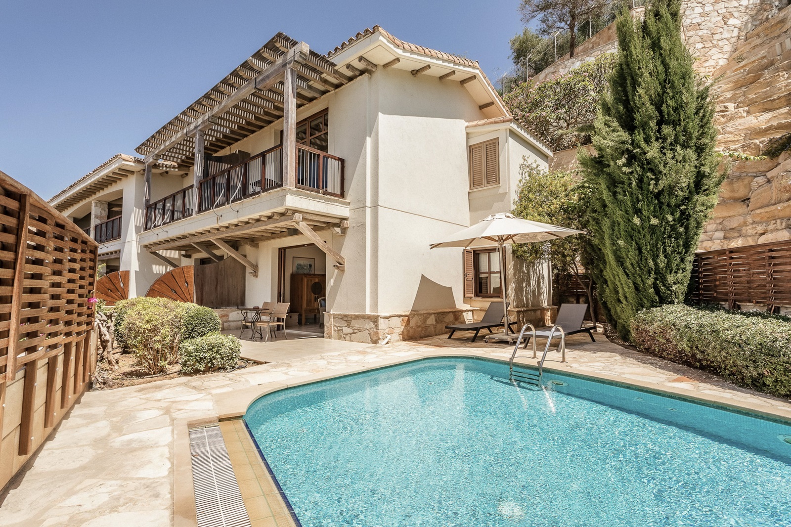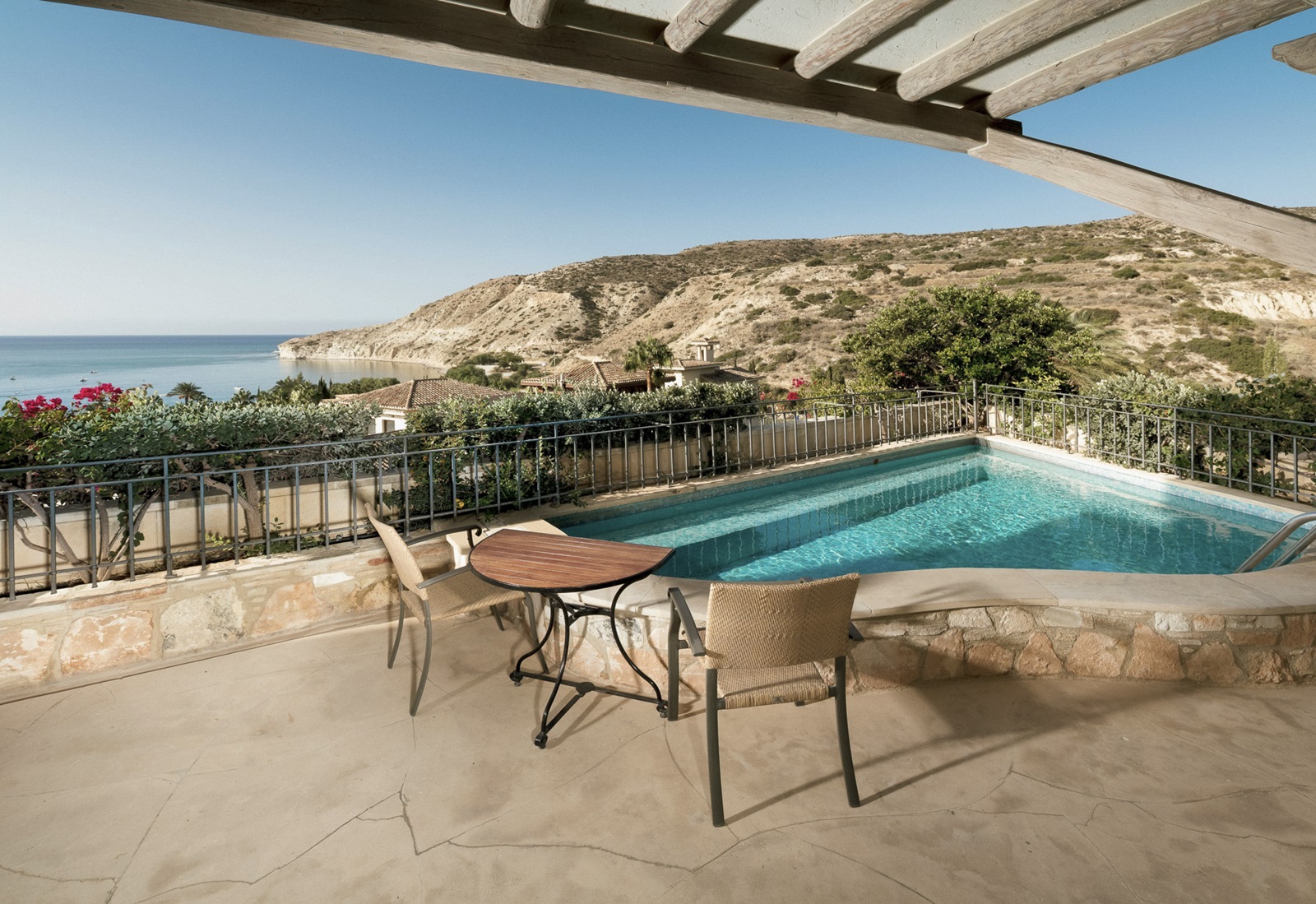 Eagle’s Nest Executive suites (60 m²), rustig gelegen op een heuvel tegenover het resort, met ruime woon-/slaapkamer en terras met plunge pool of privézwembad