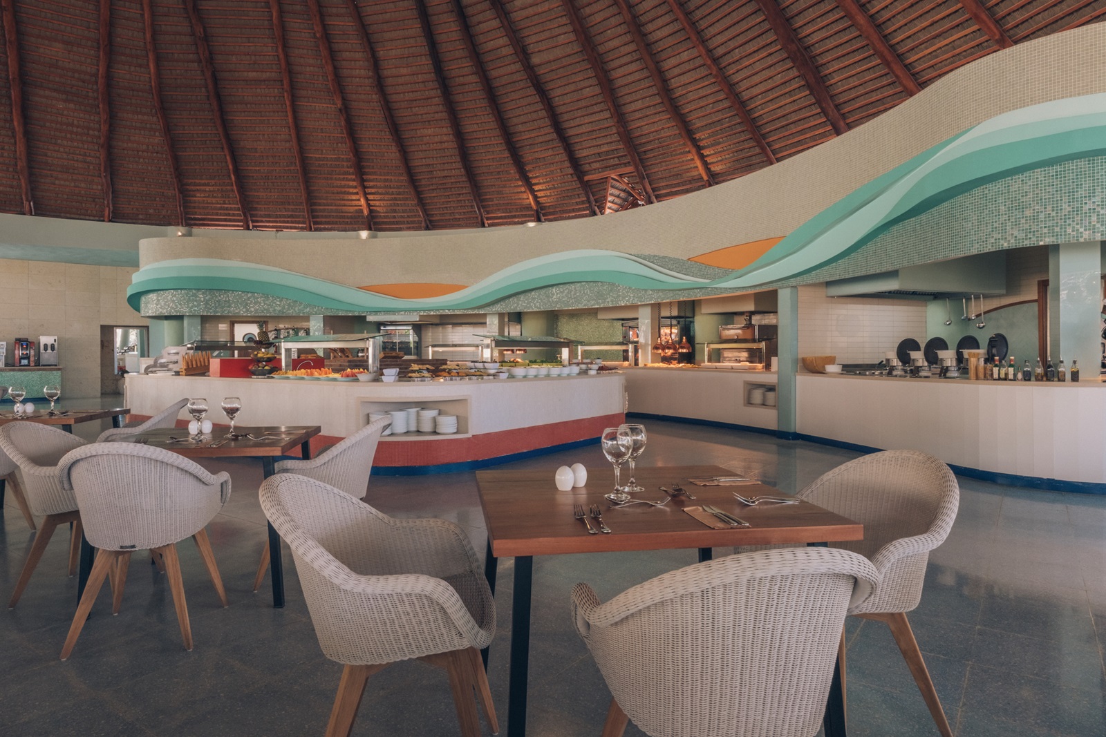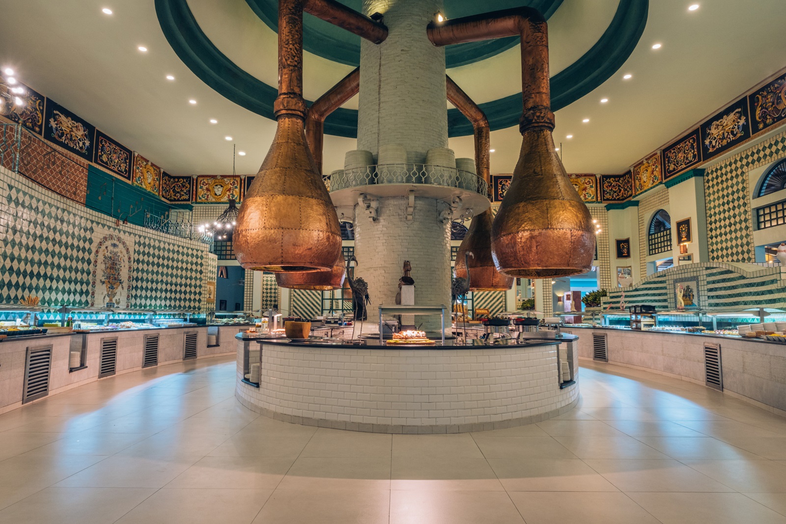 4 à-la-carterestaurants (enkel diner, reservering en gepaste kleding verplicht): steakhouse, Japans, gourmet (10+) en Mexicaans