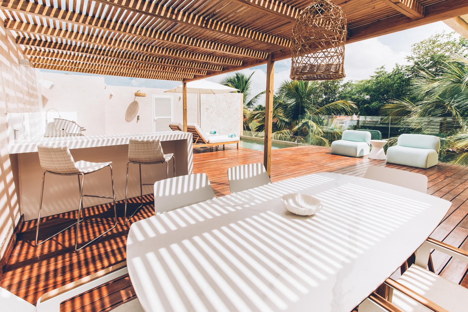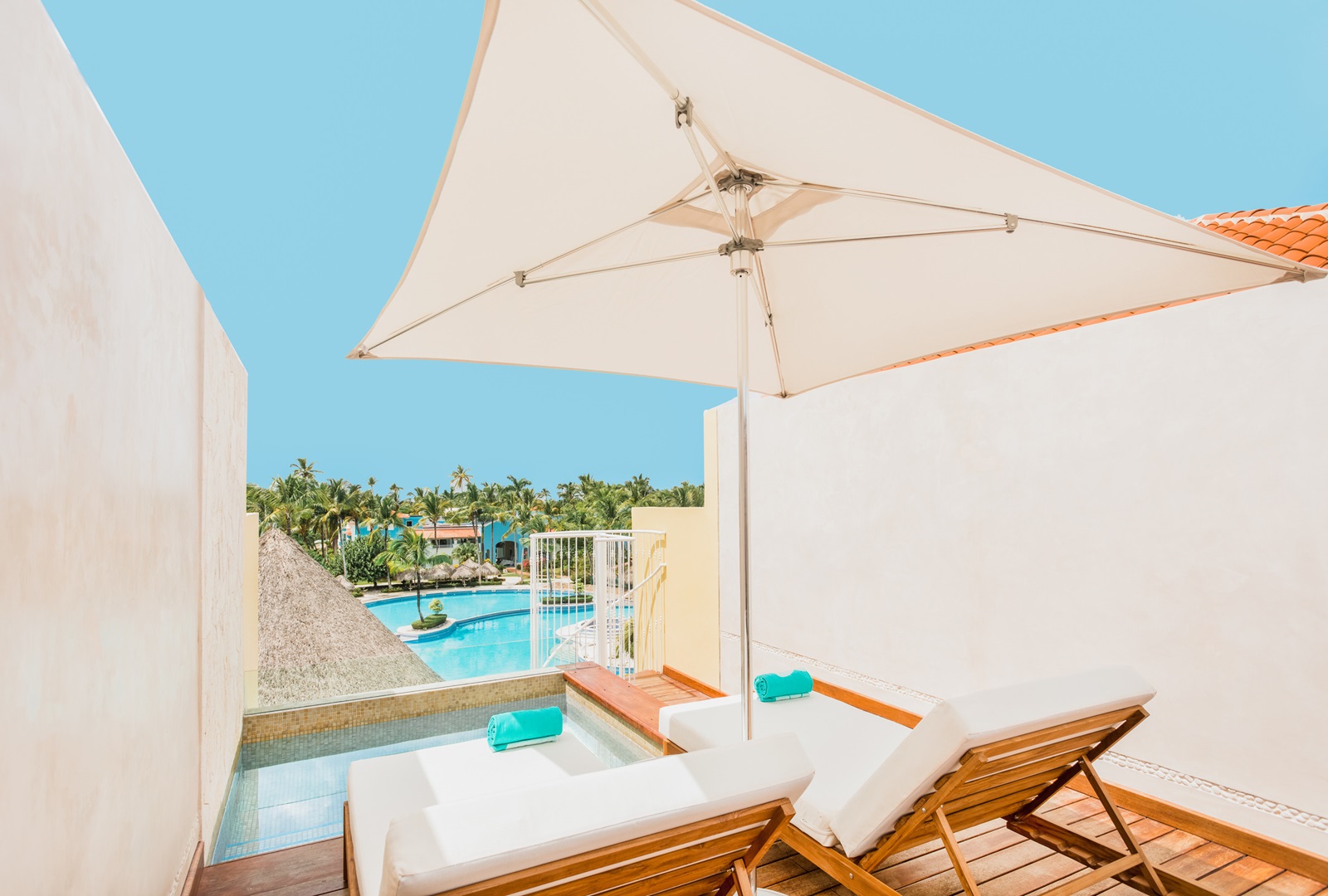 rooftop suites private pool (82m²) (18+, op aanvraag) gelegen op de bovenste verdieping met ruime woon-/slaapkamer, terras met ligbedden, privézwembad en zwembadzicht