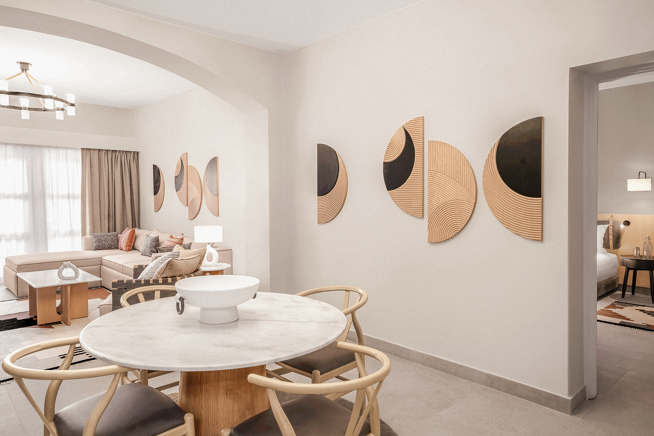 Steigenberger suites (128 m²) met aparte living en slaapkamer, badkamers en 2 balkons met tuin- of zwembadzicht