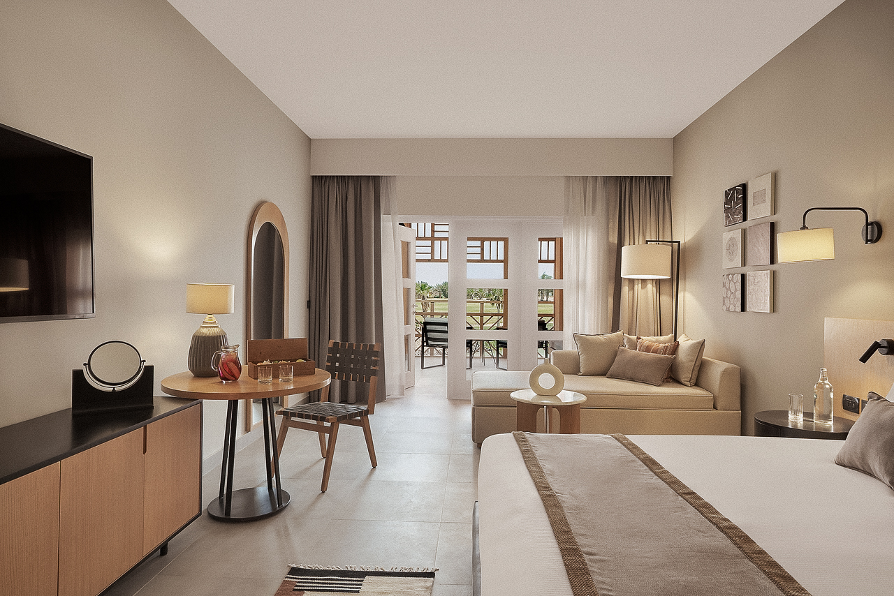 juniorsuites (72 m²) met extra ruimen open zithoek en tuin-, lagune-, golf- of zwembadzicht