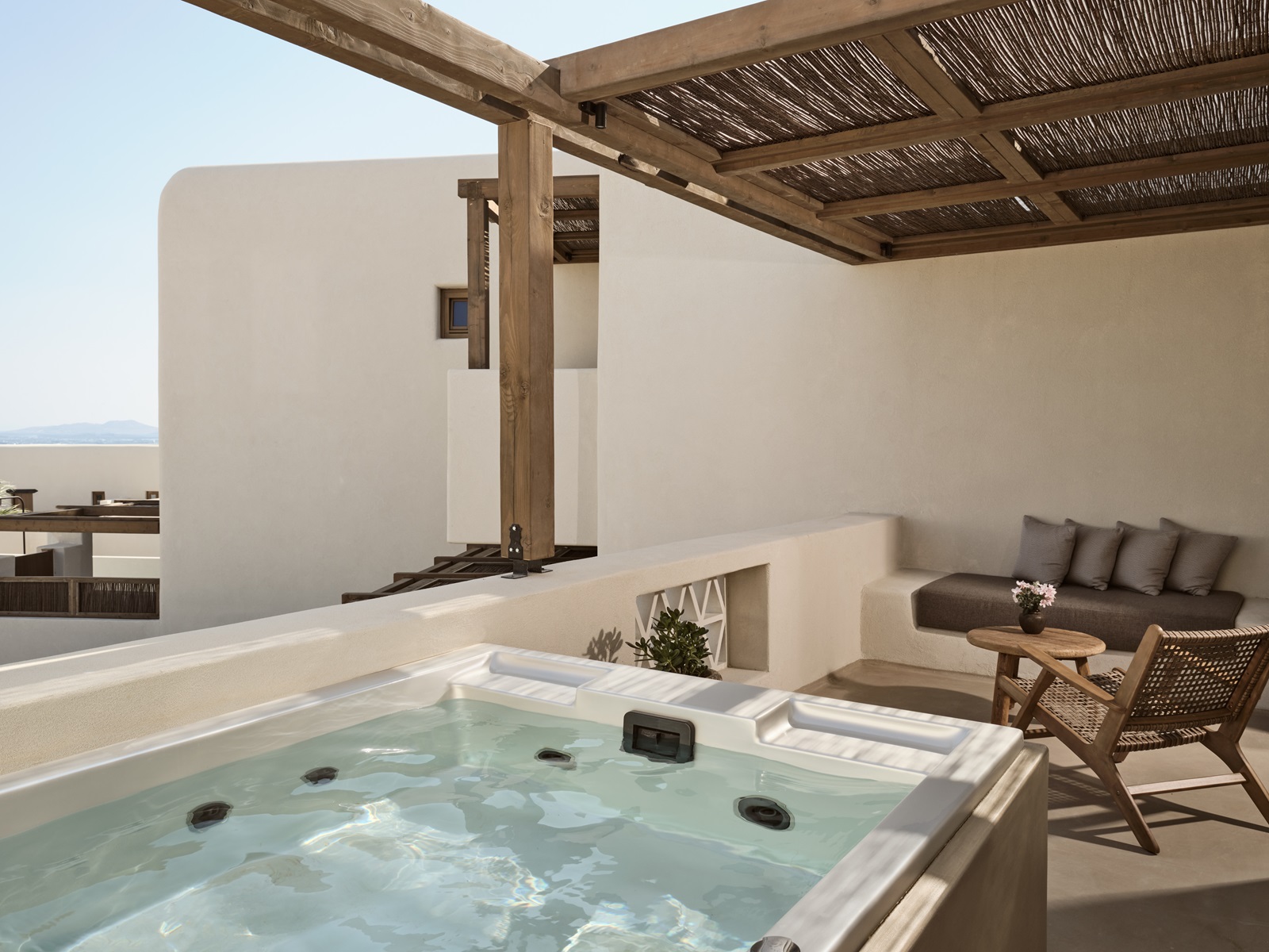 Pure Haven + Private Hot Tub (38-47 m²) op het gelijkvloers met zithoek en rooftop terras met privé jacuzzi en zeezicht