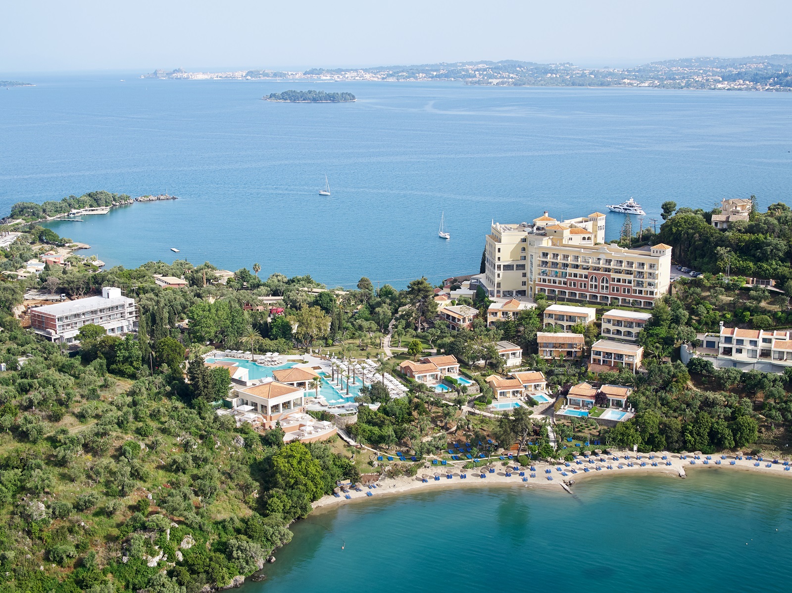 Met zijn unieke ligging, direct aan het strand, en met panoramisch uitzicht op de prachtig groene omgeving, biedt Grecotel Eva Palace zowel koppels als families een zorgeloze luxevakantie. De talrijke faciliteiten, waaronder verschillende watersporten, bekoren zowel jong als oud. In de verschillende restaurants worden uw smaakpapillen verwend met overheerlijke Mediterraanse en Griekse gerechten, en voor de kleinsten is er een apart kinderbuffet in de "Tasty Corner". De ruime kamers stralen een gevoel van licht en warmte uit en zijn voorzien van alle comfort.