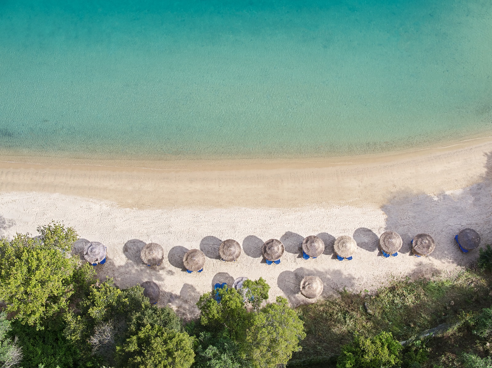 ligbedden, matrasjes, parasols en handdoeken aan het zwembad en aan het strand