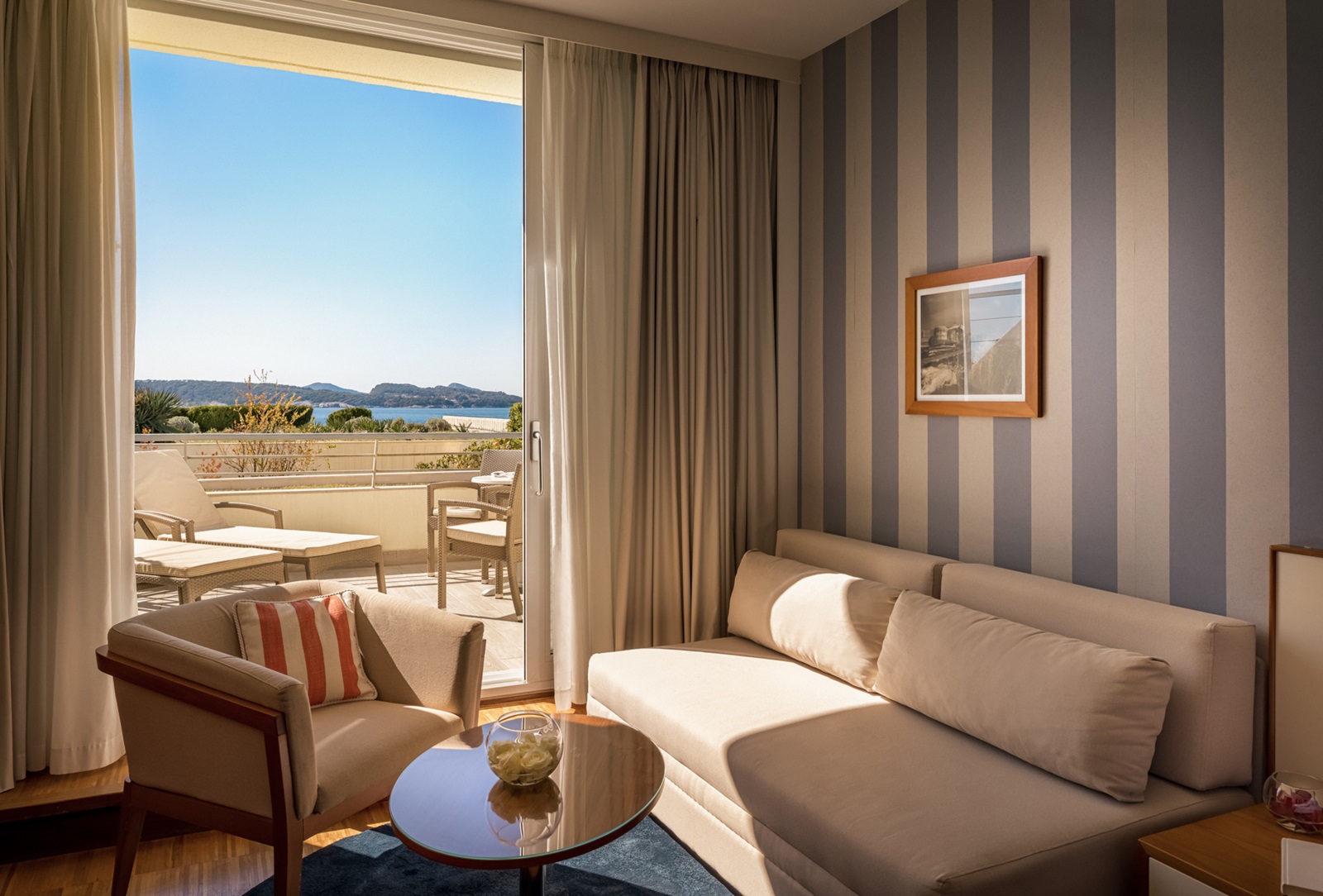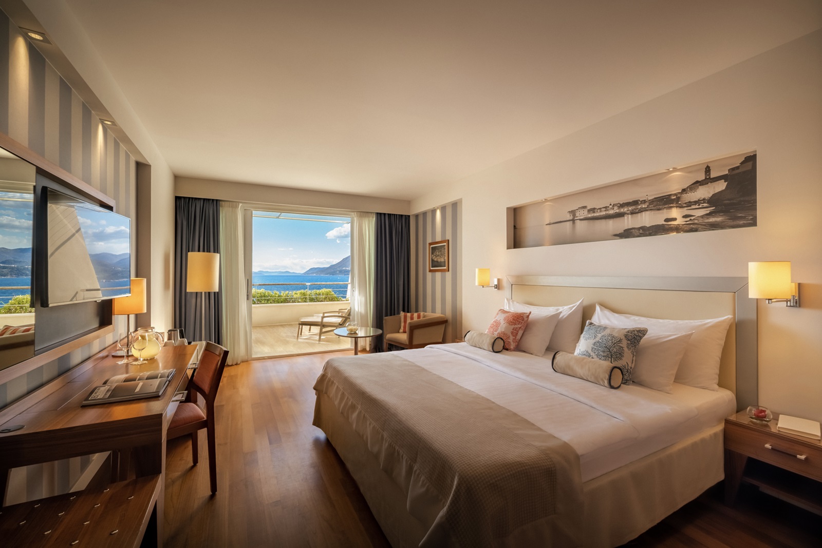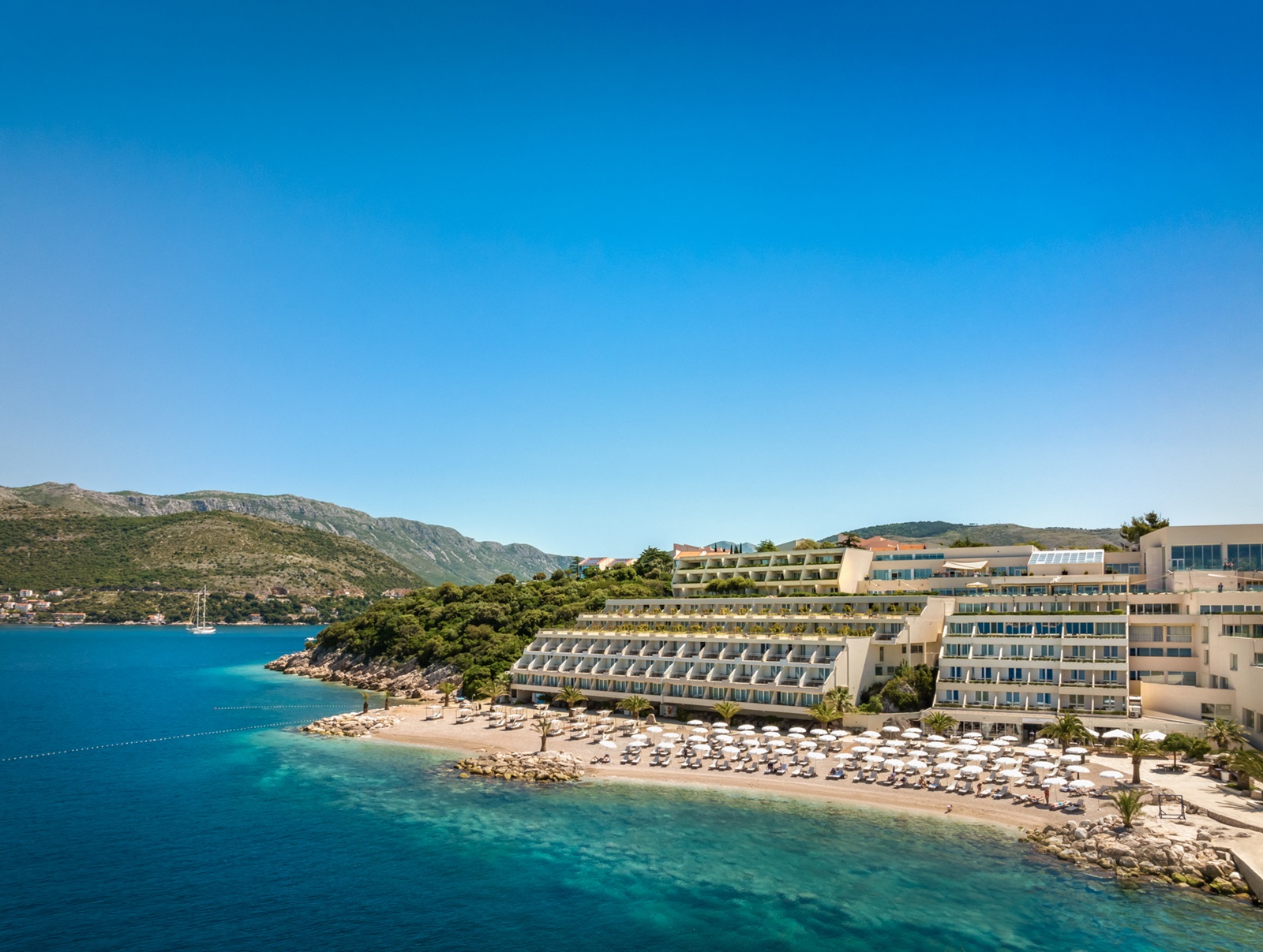 Dit vijfsterrenhotel ligt op het groene Babin Kuk-schiereiland, direct aan een kiezelstrand en op slechts 5 km van het oude centrum van Dubrovnik. Vanuit elke kamer geniet u van een adembenemend uitzicht over de azuurblauwe Adriatische Zee. Hier komt u volledig tot rust op het zonneterras, aan het zwembad of in het luxe wellnesscenter voorzien van sauna’s, whirlpool en een ruim aanbod aan massages en schoonheidsbehandelingen. Het ruime buffetrestaurant met zeezicht en twee à-la-carterestaurants serveren verfijnde gerechten in een unieke setting. Voor sportliefhebbers zijn er tal van gratis activiteiten zoals fitness, aquagym en beachvolleybal. Dit hotel combineert natuur, rust en comfort met een vleugje Luxe.