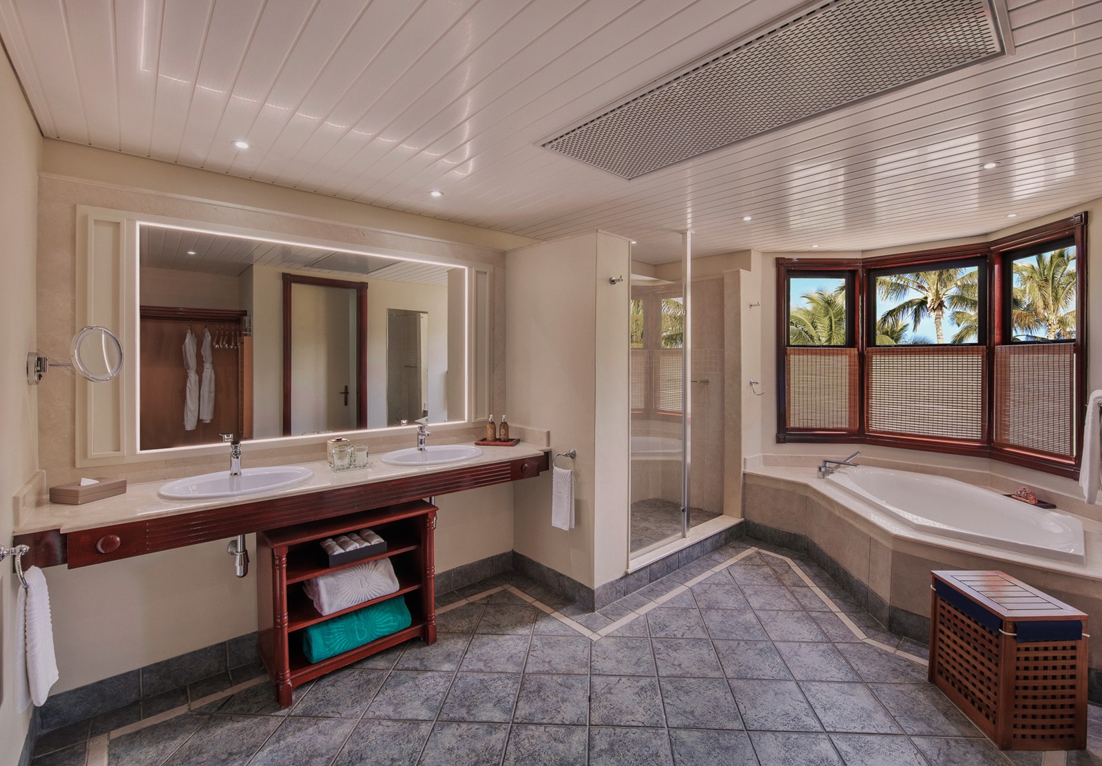 alle naar zeegerichte suites liggen over 6 clusters van individuele bungalows met 2 tot 4 suites verspreid en beschikken over bad, douche, haardroger, satelliet-tv, wifi, telefoon, strijkijzer en -plank, minibar (€), airconditioning, balkon of terras