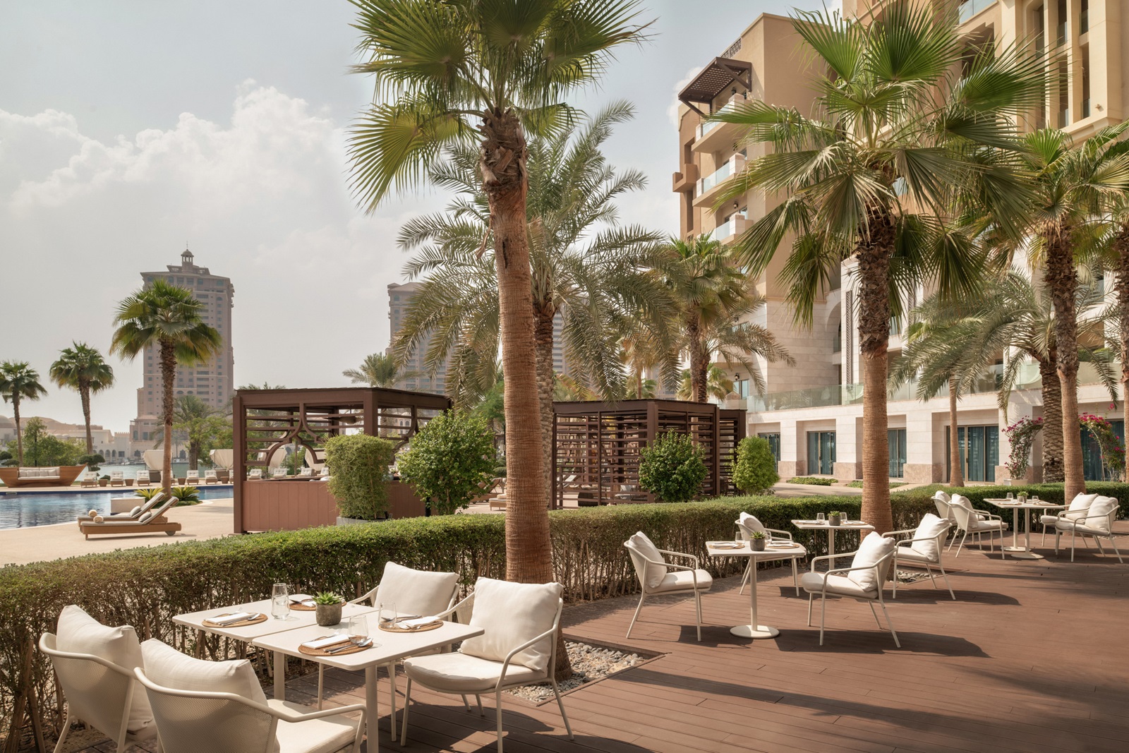 klanten die verblijven in halfpension of volpension hebben ook toegang tot de restaurants van hotel The St. Regis Doha Astor Grill, RIVAAJ, Vine, Vilbrequin, Bebabel en Sarab Lounge (lunch of diner, vast menu, reservatie aanbevolen)