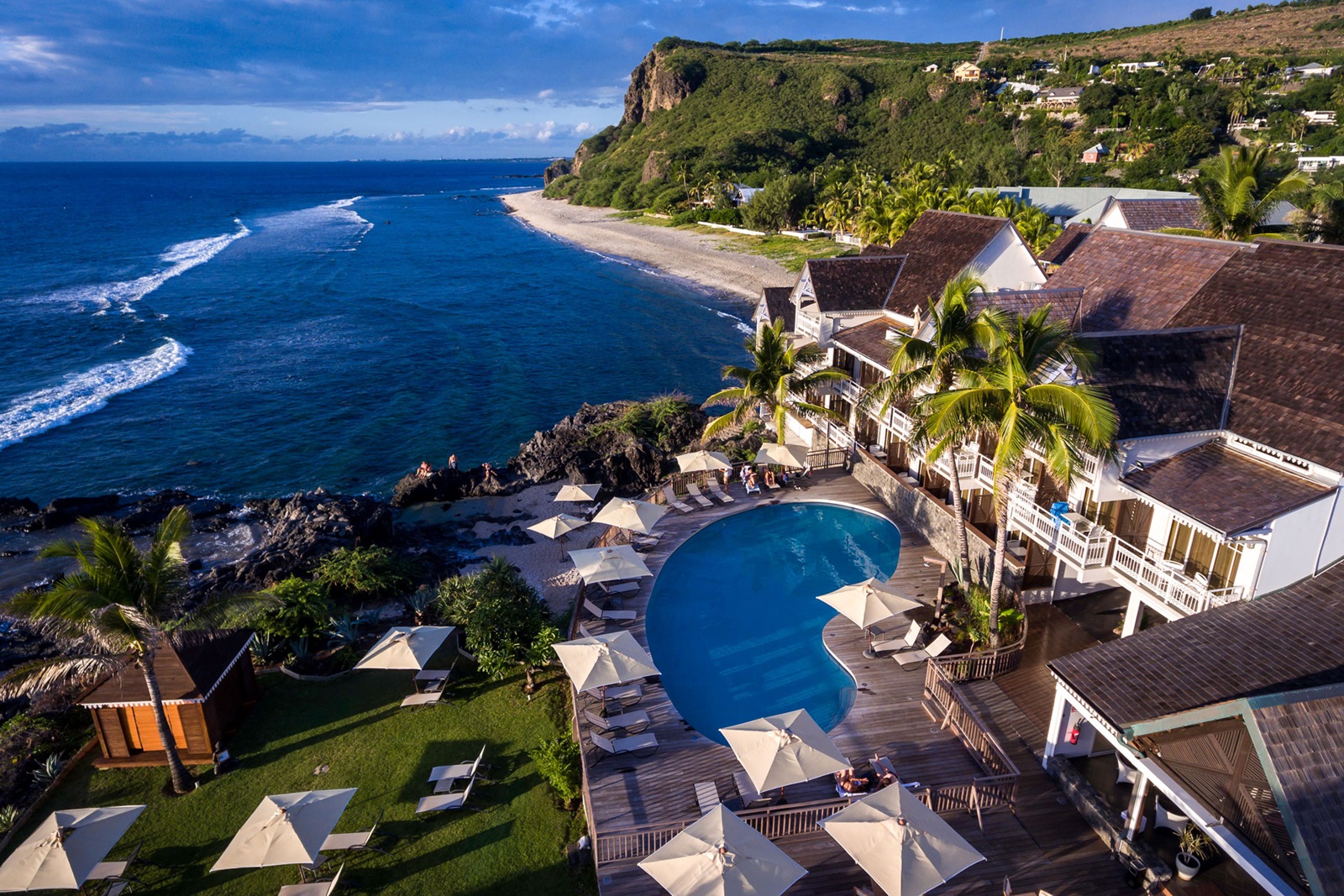 Dit is een heerlijk intiem hotel, ideaal voor koppels en families. Het is gelegen op een basaltrots aan het strand met een schitterend uitzicht over de Indische Oceaan. U treft hier de typische creoolse gastvrijheid die zich wentelt in een authentieke, warme sfeer. Veel aandacht gaat uit naar de lokale identiteit: niet alleen weerspiegelt de inrichting van de kamers mooi de etnische diversiteit van het eiland, ook in het restaurant 'La Table du Boucan' geniet u van een uiterst creatieve en lokale keuken. Brengen de avond mee op smaak: regelmatige events zoals piano bar, jazz- en creoolse muziekavonden.