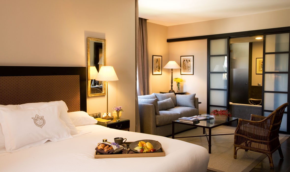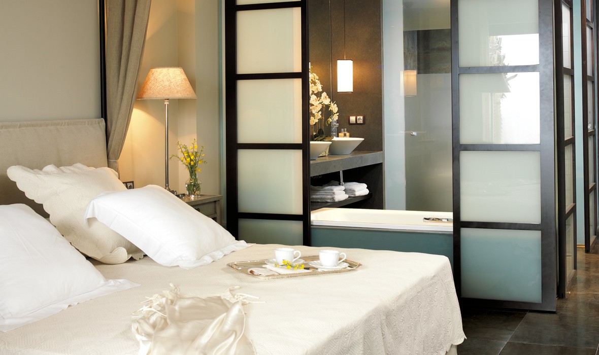 deluxe kamers (30 m²) en ruimere deluxe superior kamers (35 m²) met zithoek, beiden met badkamer met schuiframen