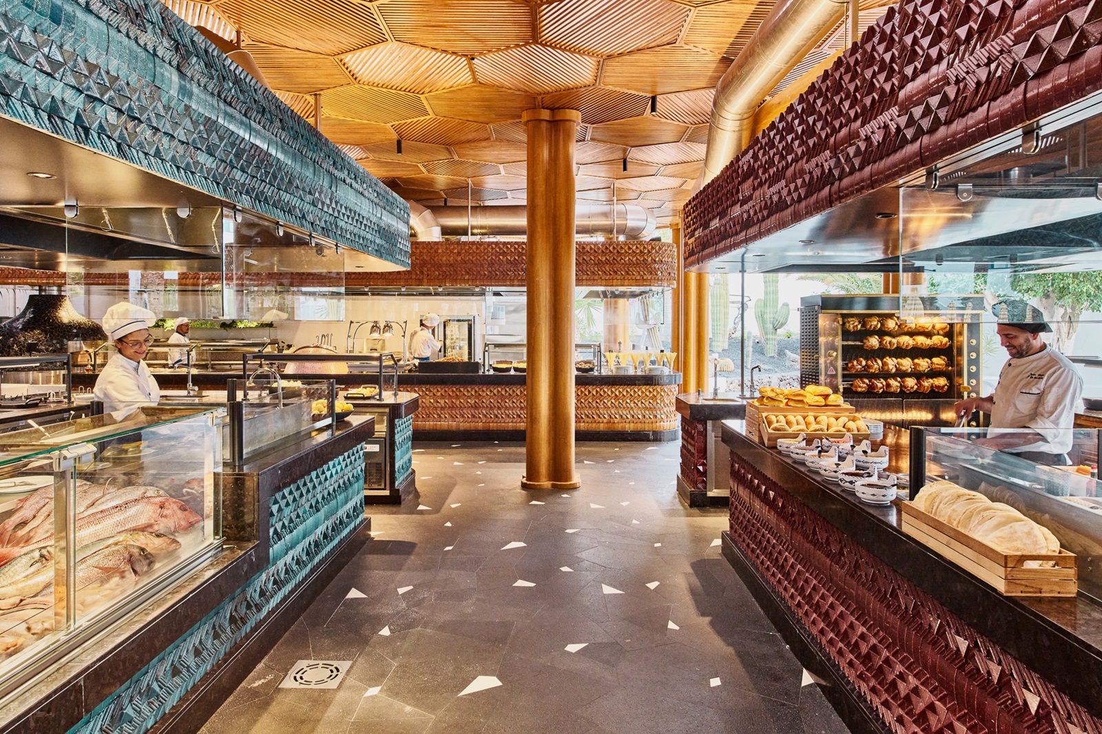 hoofdrestaurant met groot terras en maaltijden in buffetvorm, grill, show-cooking en thema-avonden