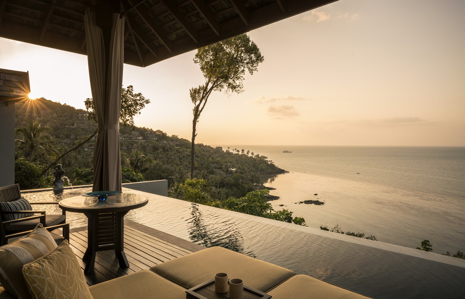 Deze Four Seasons ligt op een met palmbomen bezaaide helling die uitkijkt over de Golf van Thailand. Ongerepte stranden, tropische flora en azuurblauwe wateren vormen er het decor. Het hotel zelf bestaat uit een cluster van poolvilla’s, gebaseerd op de traditionele Zuid-Thaise architectuur en voorzien van op maat gemaakte kunst. Ook de moeite waard: de spa, ondergebracht in een kokospalmbos. Probeer zeker de Kala Coconut-massage, waarbij gladde kokosnootschalen gebruikt worden om de spieren zachtjes te kneden, terwijl geurige kokosolie de huid kalmeert.