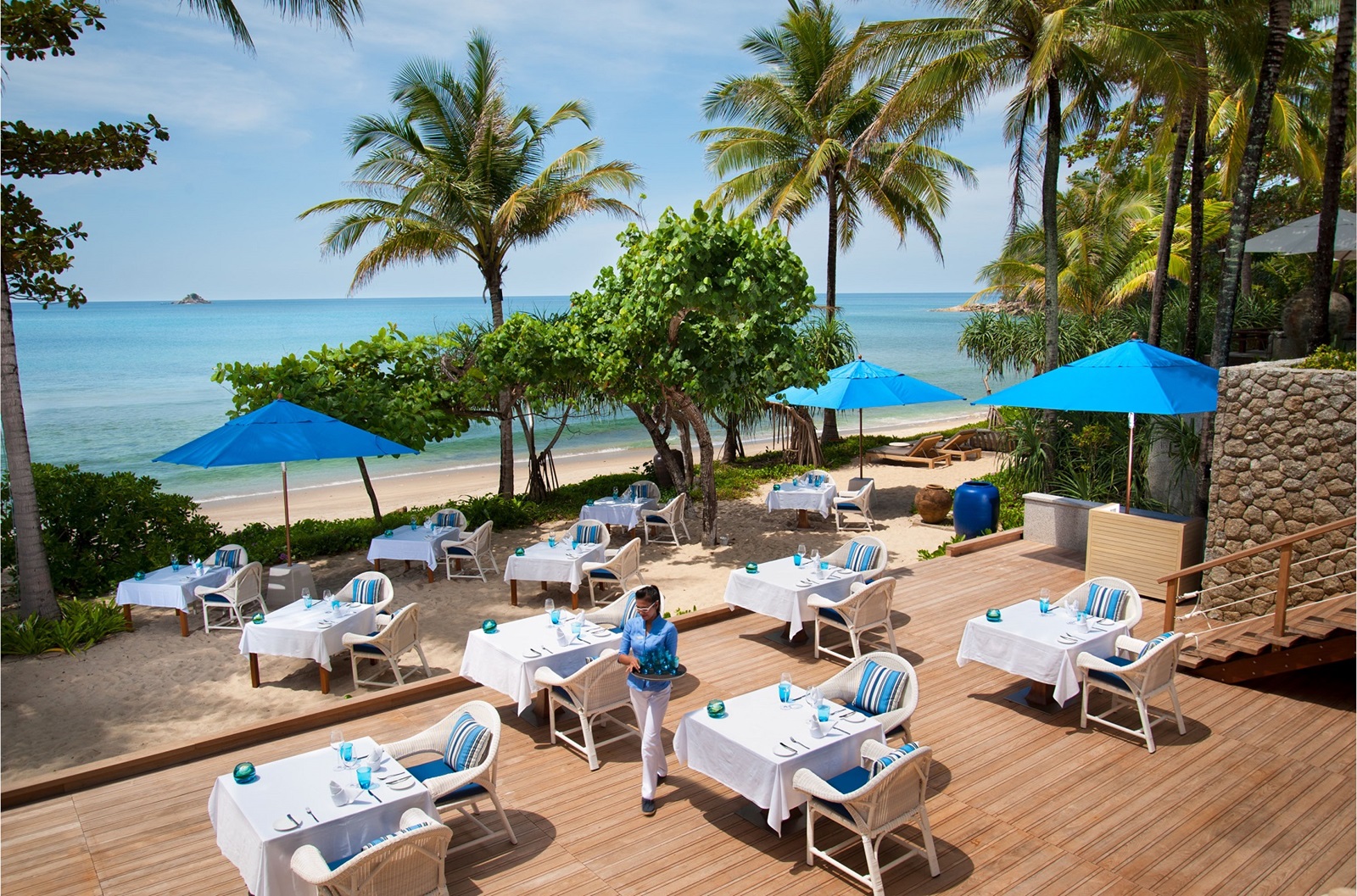 4 à-la-carterestaurants: Jampa (lokale keuken, zero waste), Cielo & Spice (internationaal), Thai Library (Thaïse fine dining) & La Crique (Franse keuken)