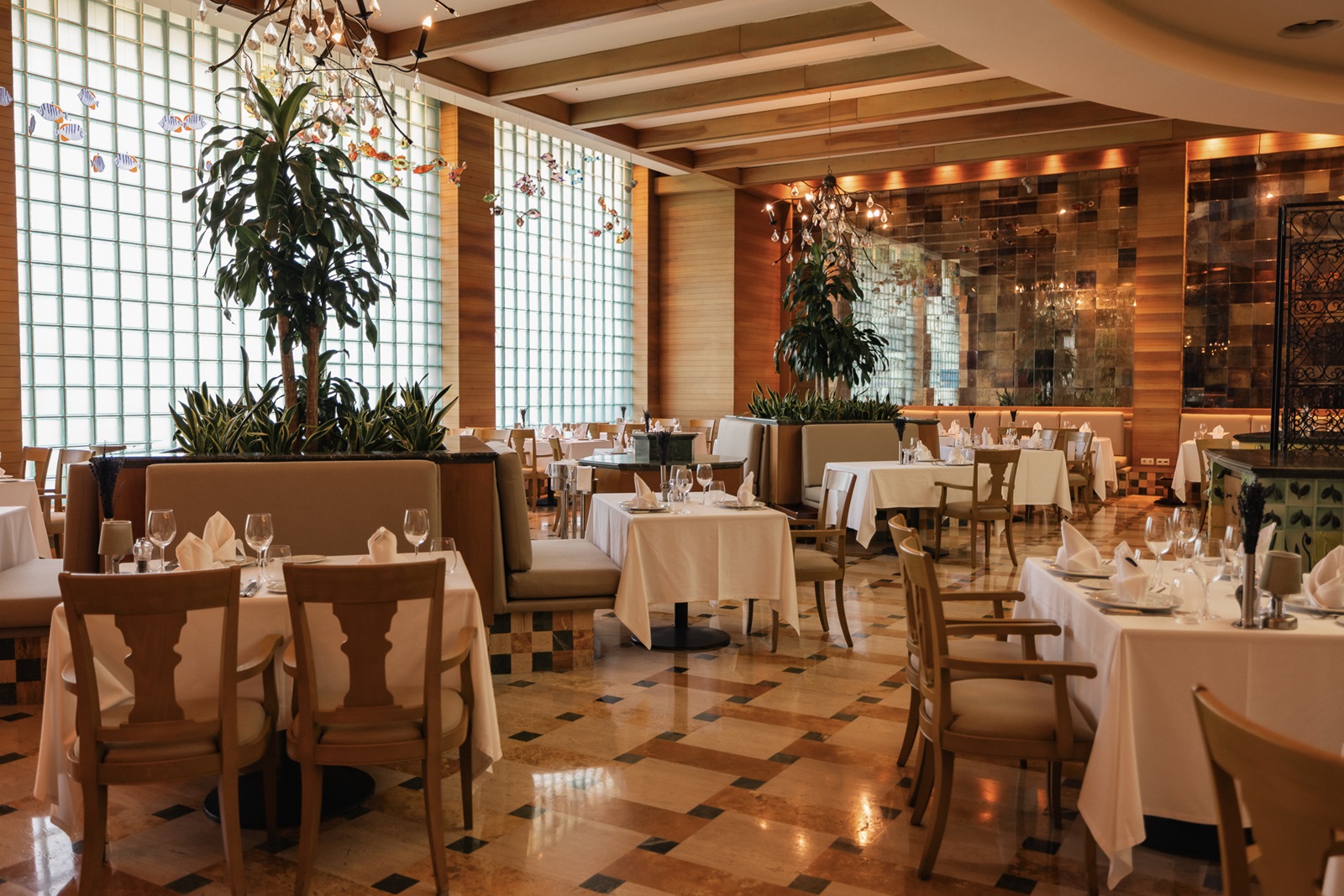 5 à-la-carterestaurants: Spaans, Italiaans, Grieks, internationaal en Turks (grill en BBQ)