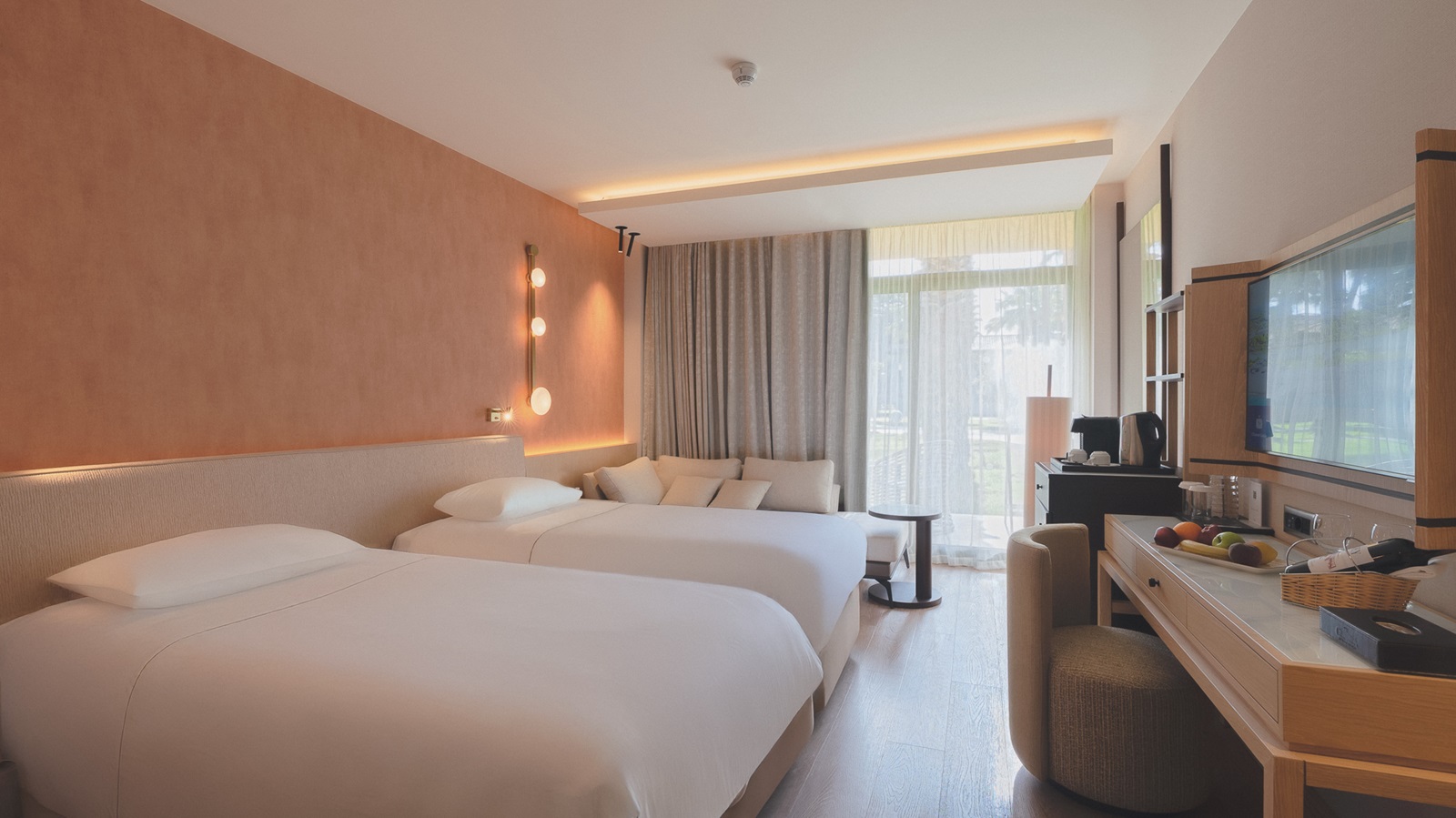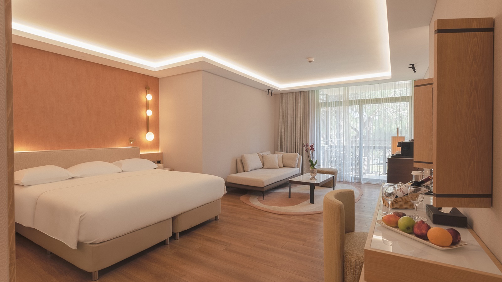 alle kamers beschikken over douche, haardroger, badjassen en slippers, airconditioning, telefoon, flatscreen-tv, koffie- en theezetfaciliteiten, minibar, kluisje, zithoek, tapijt, balkon of terras