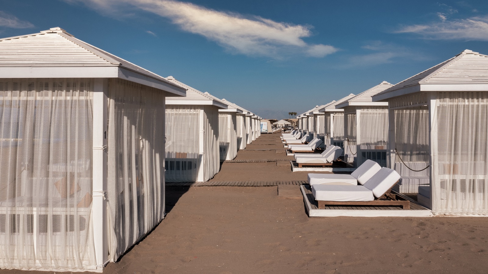 gratis ligbedden, parasols en handdoeken aan het zwembad en aan het strand