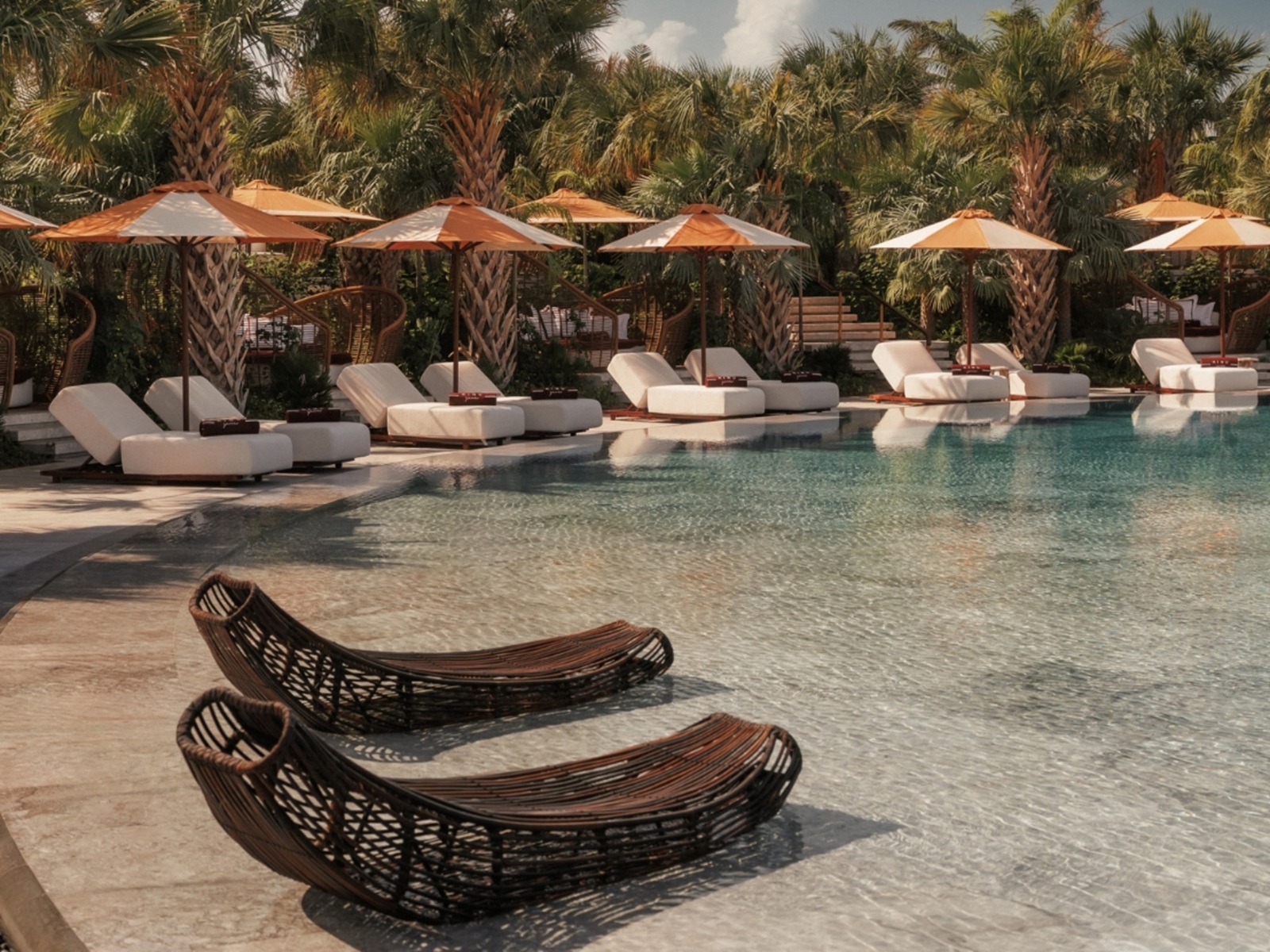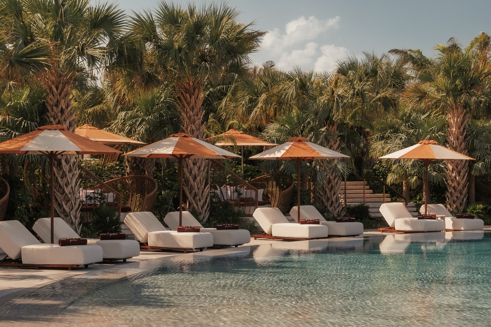 gratis ligbedden, parasols en handdoeken aan het zwembad en het strand