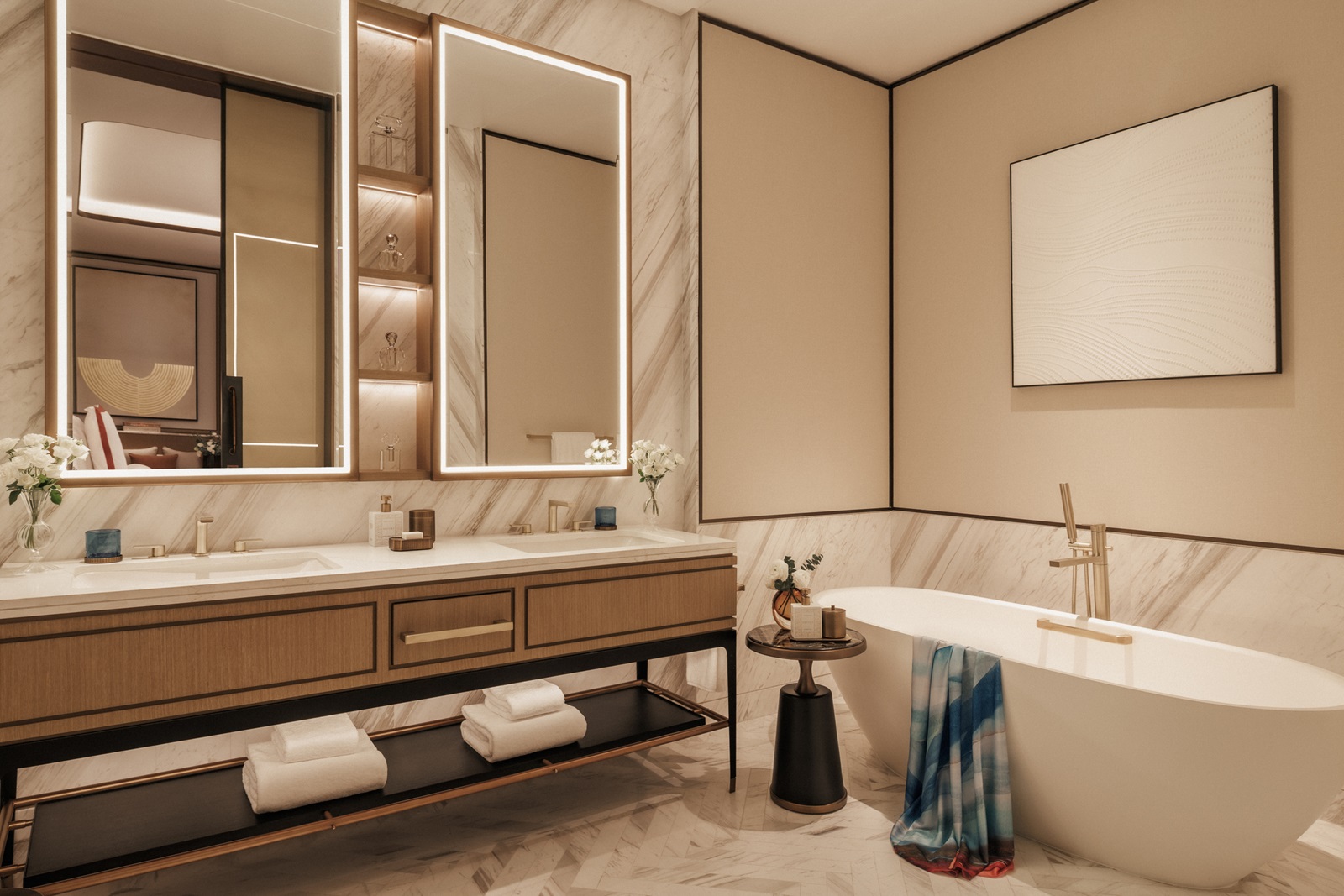 Marina Deluxe kamers (67 m²) met zicht over de marina en Dubai skyline