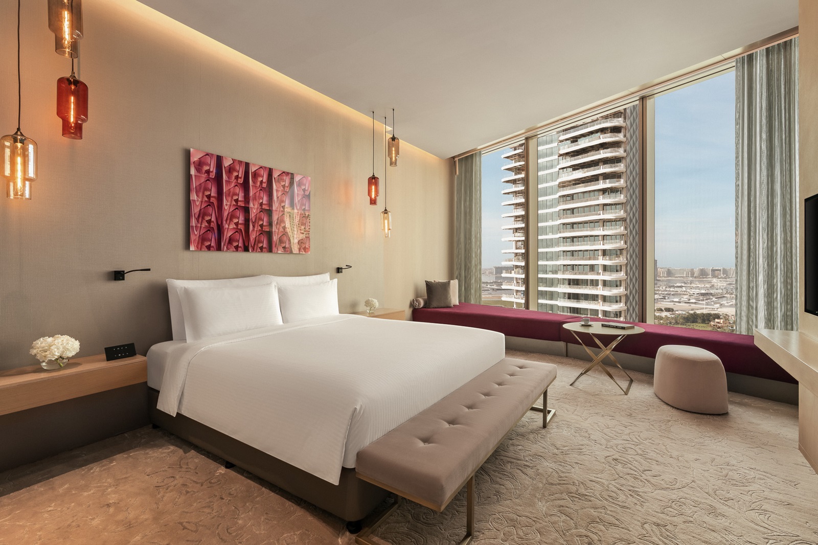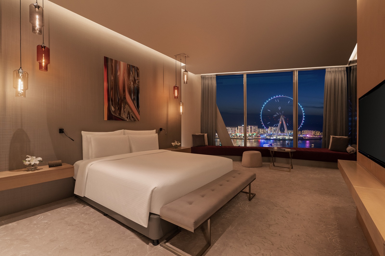 Premium kamers (37-48 m²) met kingsize bed of 2 aparte bedden en spectaculair zicht op de Arabische Golf en Ain Dubai