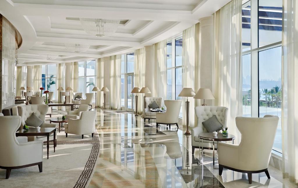 Pearl Club kamers (55 m²) met Skyline- en zeezicht zijn hoger gelegen en bieden toegang tot de Pearl Club Lounge