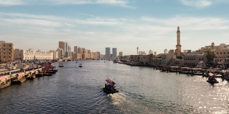 In Al Bastakiya lijkt het alsof de tijd even stilstaat. De zandkleurige huizen, houten deuren en windtorens vertellen het verhaal van de eerste handelaars. In Al Seef vloeien oud en nieuw moeiteloos samen: traditionele gevels, moderne cafés en een zachte bries van de Creek.