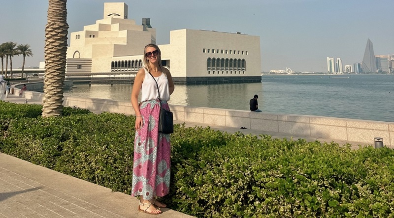 Reizen naar Doha is een plezier op zich. Qatar Airways behoort voor Maïté tot haar persoonlijke top drie van beste airlines ter wereld. En ook bij aankomst stelt Hamad International Airport niet teleur: een luchthaven die aanvoelt als een kunstgalerie, met iconische installaties, een weelderige binnentuin en service van wereldklasse.