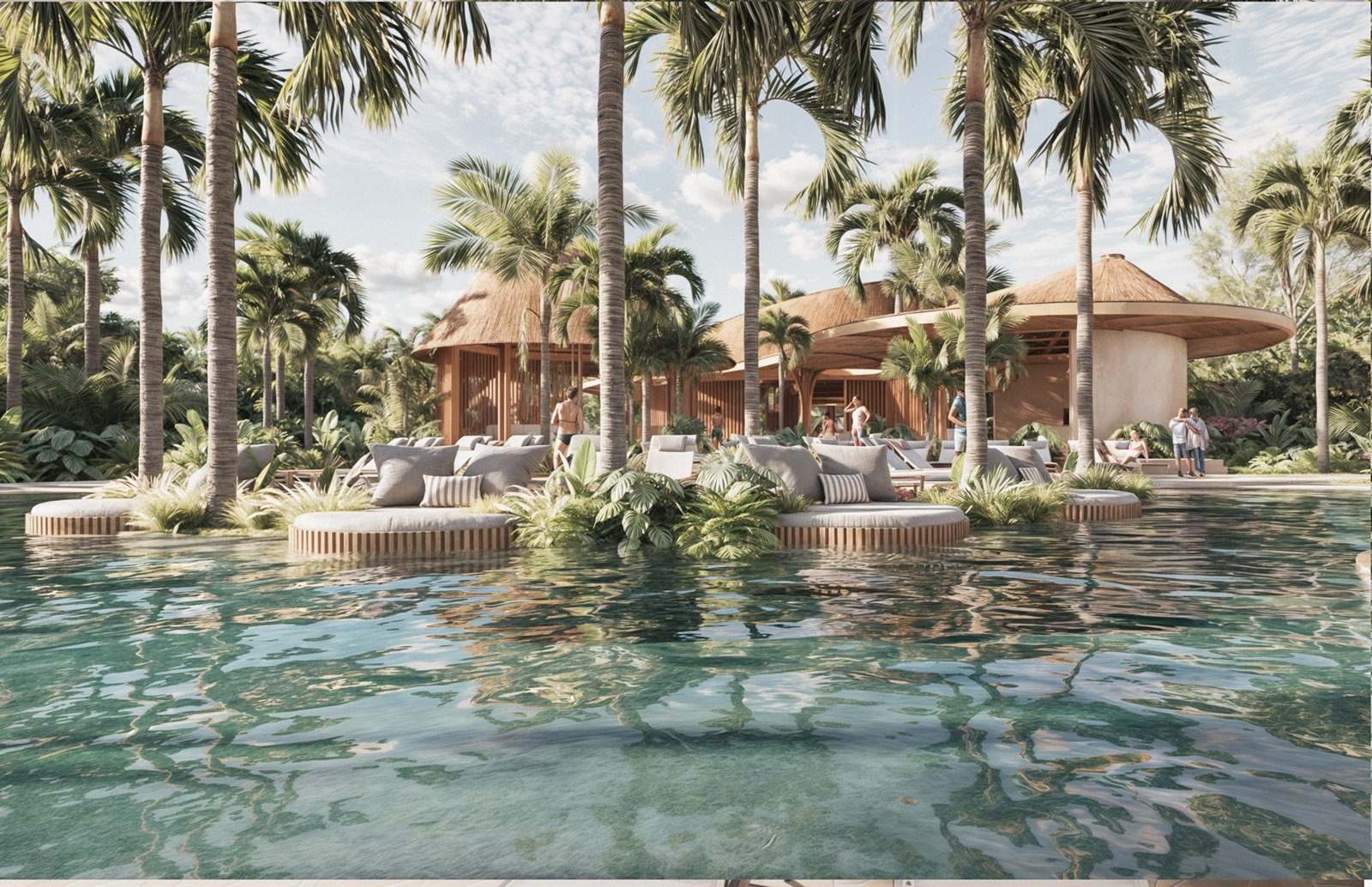 one bedroom swim-up suites (ca. 82 m²) met directe toegang tot het zwembad (op aanvraag)