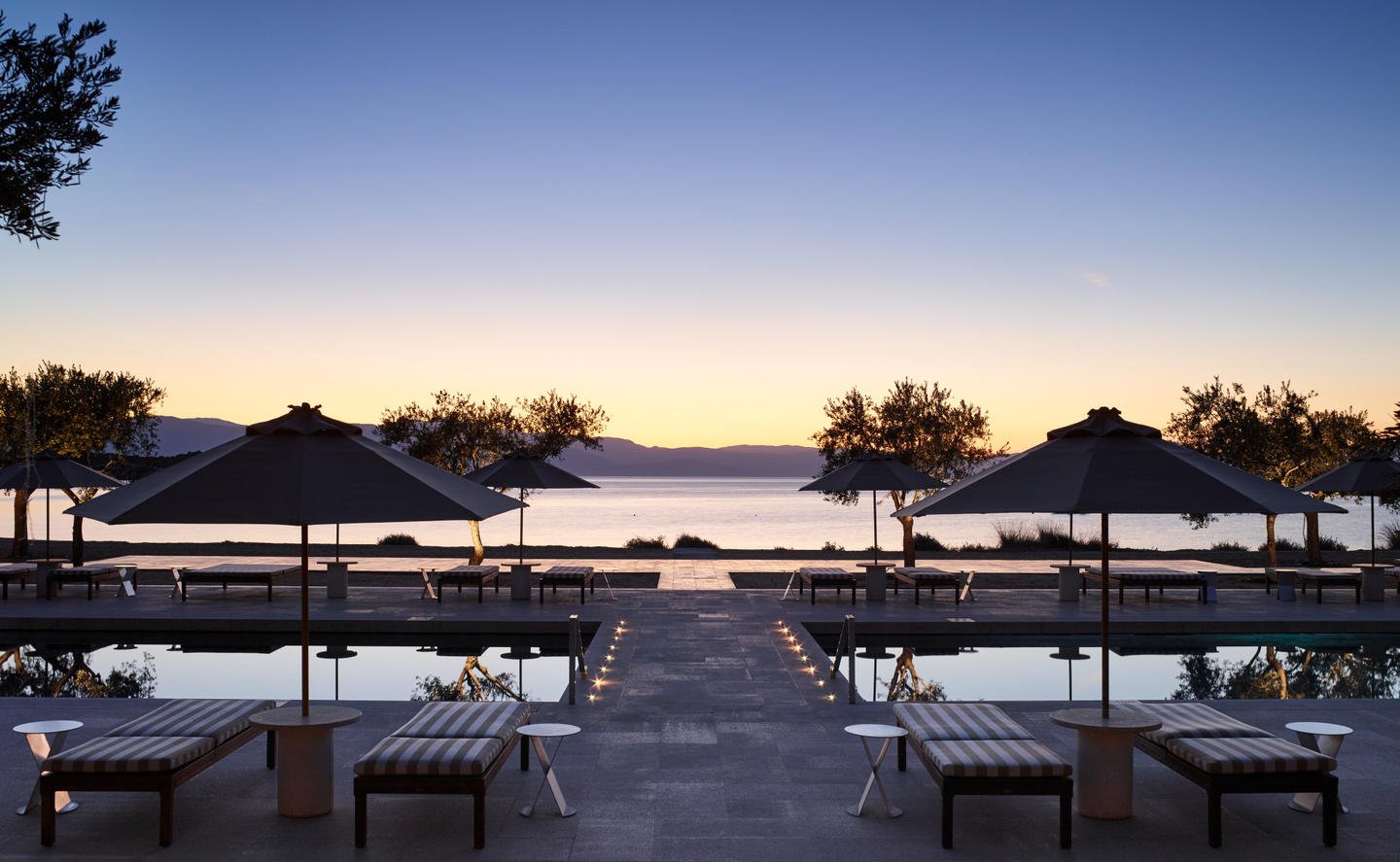 Amanzoe is een adembenemend resort. Het bevindt zich op een heuveltop met een 360°-panorama op de Egeïsche Zee, omringd door glooiende olijfgaarden. De locatie is overweldigend, het hotel is dat nog meer. De algehele setting ademt rust en sereniteit: van de minimalistische Griekse architectuur tot de delicate inrichting. Vooral de Pavilion kamers met zwembad zijn van een ongeziene schoonheid. Ontspannen doet u in de 2.850 m² grote spa of in de exclusieve Beach Club met verschillende zwembaden en een restaurant. Er even ‘actief’ tussenuit? Op het strand zijn er speedboten beschikbaar om te cruisen tussen de nabijgelegen eilanden.