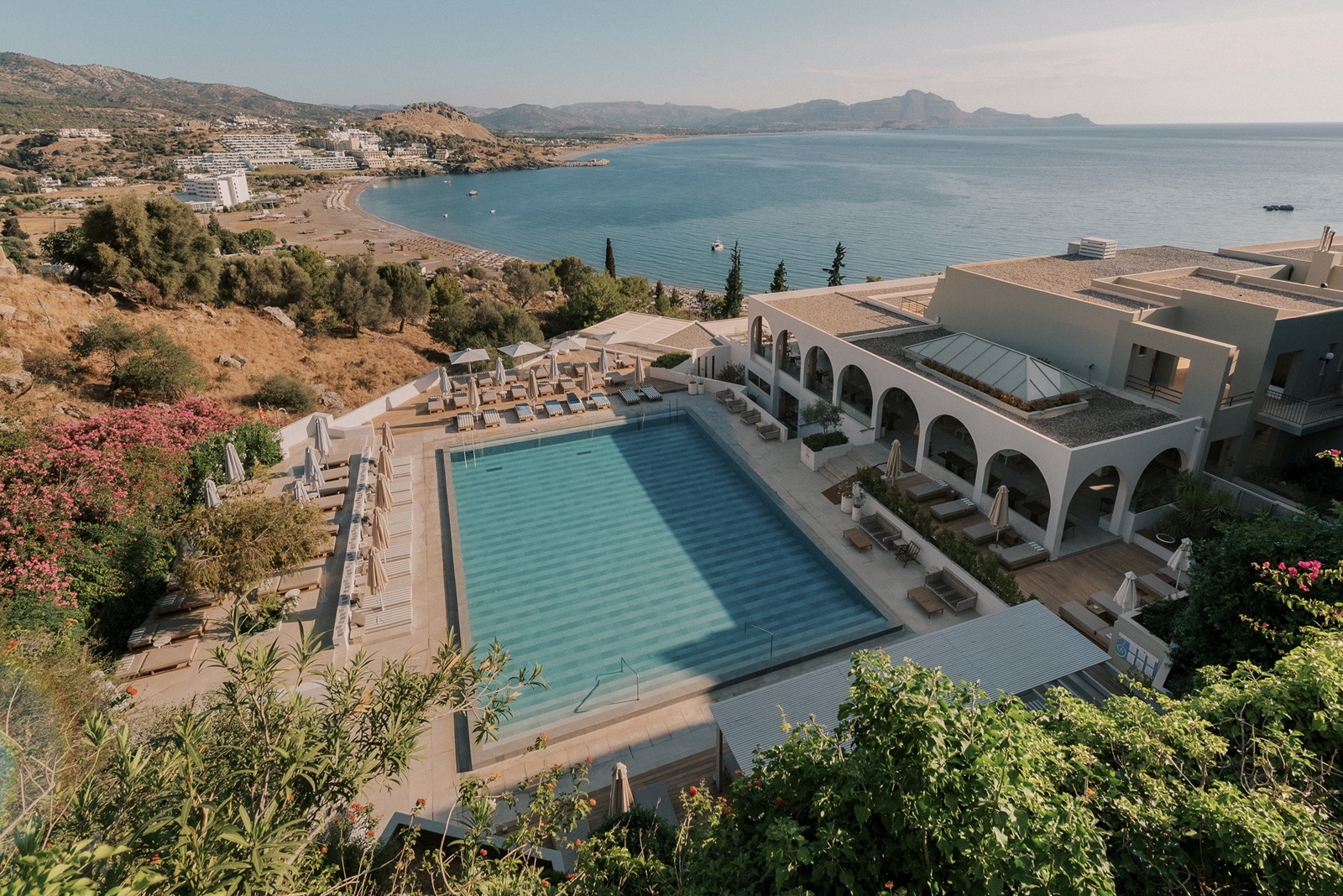 Lindos Mare, Seaside Hotel: ontspannend, gastvrij en elegant Het 5* hotel is gebouwd tegen een heuvel en biedt uitzicht op de prachtige baai van Vlicha. Het is gelegen op 2 km van het charmante dorpje Lindos, een van de belangrijkste en meest historische oriëntatiepunten. Lindos Mare staat bekend om zijn rust, gastvrije sfeer en ongeëvenaarde service en staat garant voor een onvergetelijke vakantie-ervaring voor koppels en gezinnen. Modern design, zonovergoten omgeving, attente persoonlijke service en meerdere uitzonderlijke eetgelegenheden, creëren een ideale setting voor diegenen die de luxe en ontspannen levensstijl op het eiland Rhodos willen ervaren.