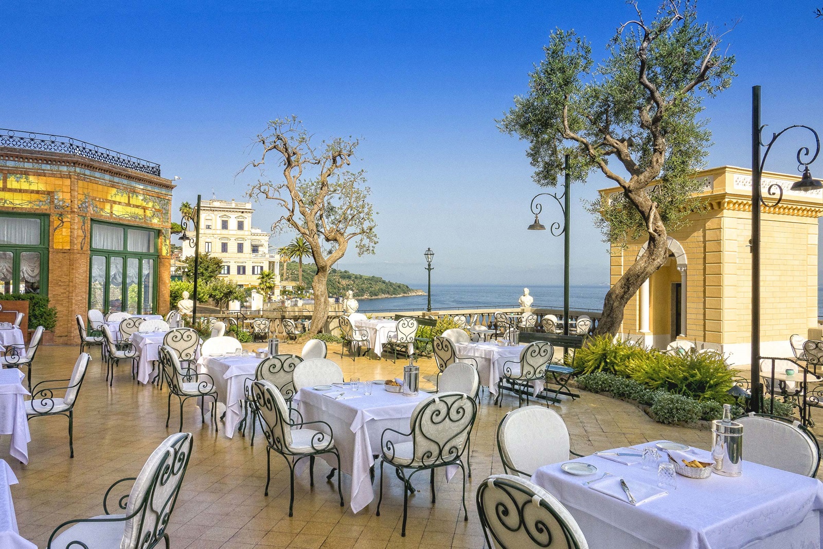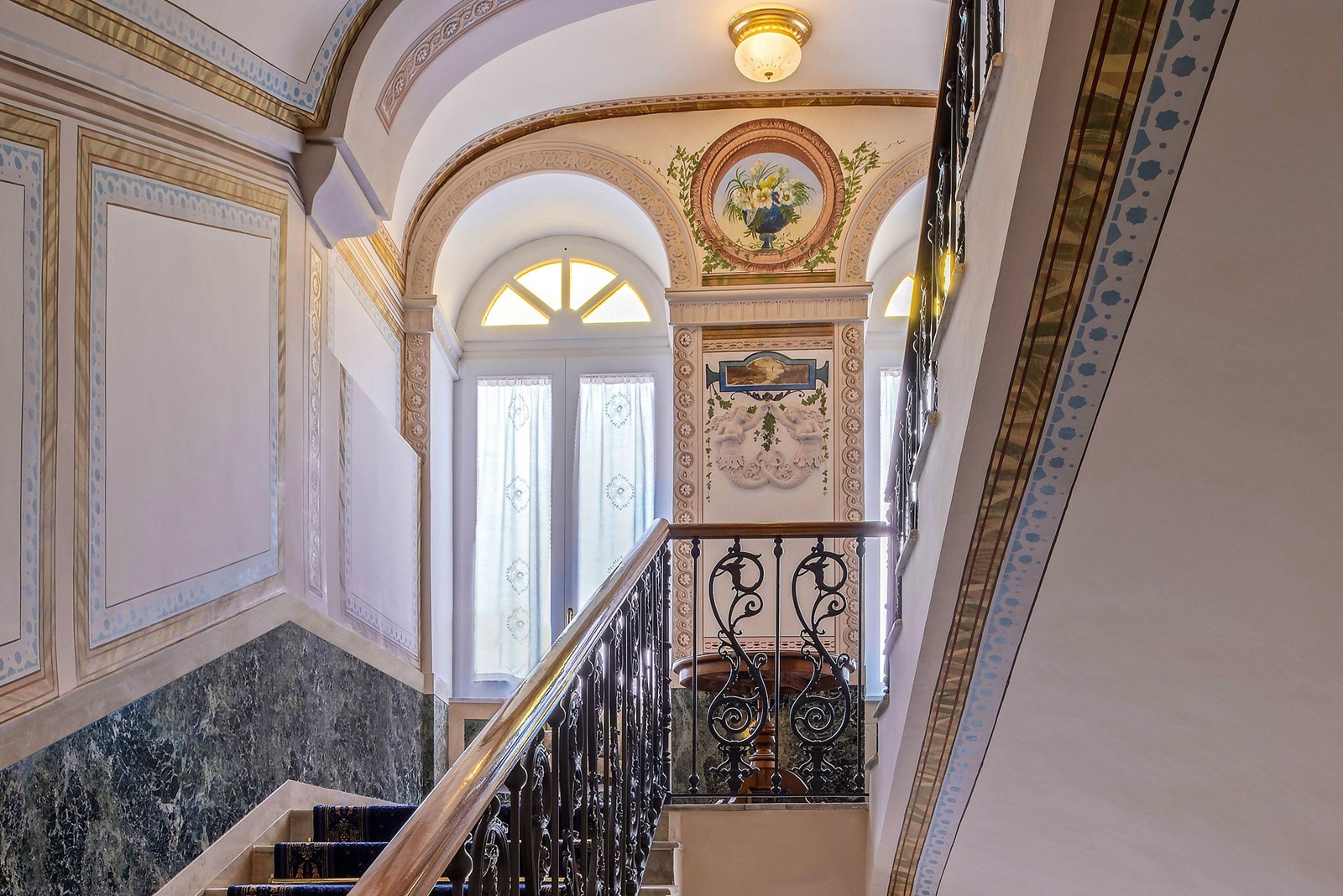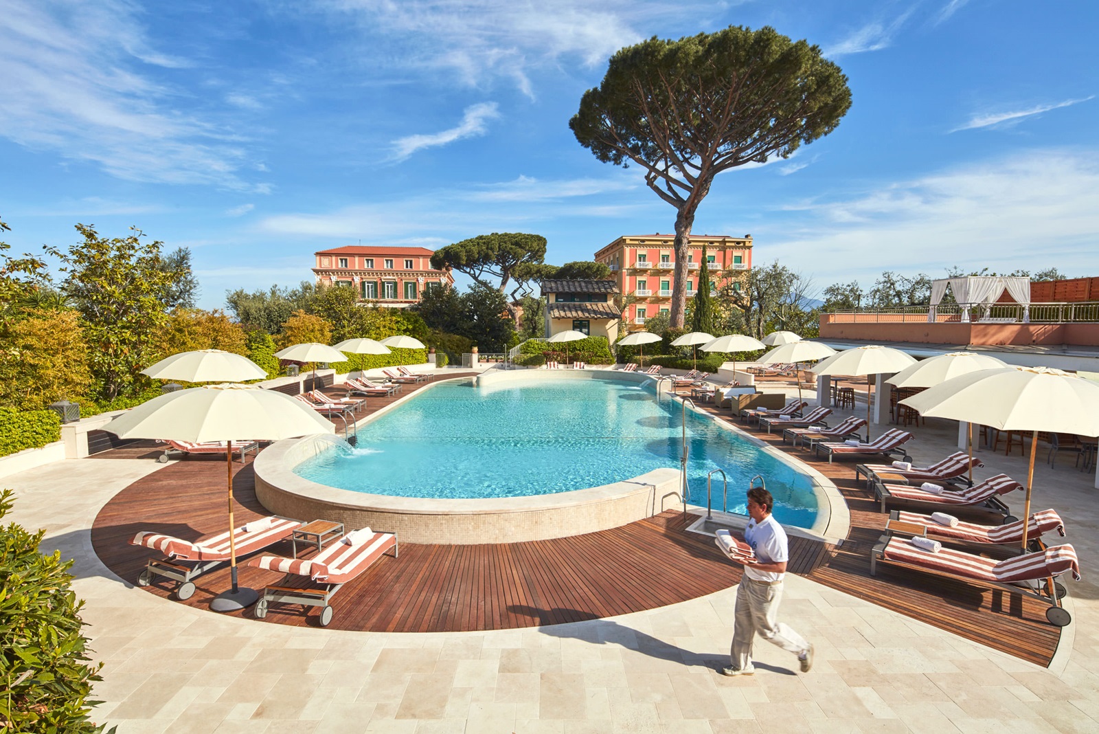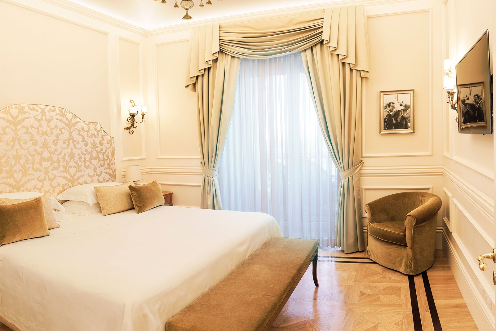 79 kamers en suites, ondergebracht in drie historische villa’s (Vittoria, La Favorita, La Rivale), elk individueel ingericht met antieke meubels, fresco-plafonds, Vietri-tegels en marmeren badkamers.