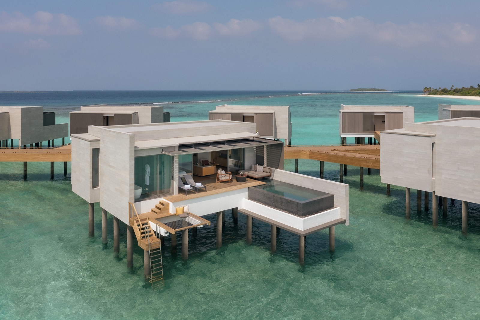 80 villa’s met privézwembad (44 beachvilla’s en 36 overwater villa’s)